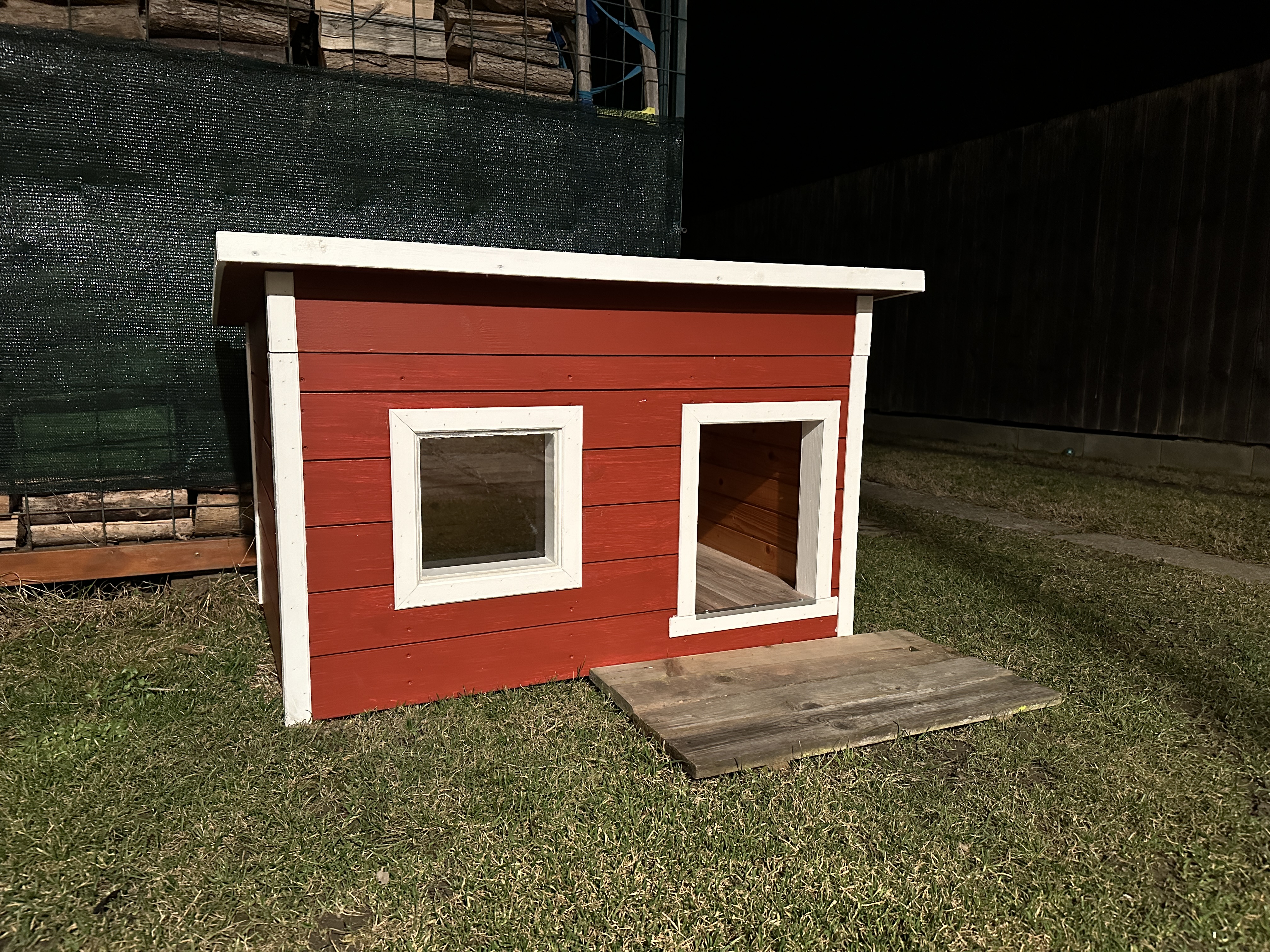 Konečne je z dielne von. Nová buda pre nového menšieho psíka ktorý sa objavil deťom pod stromčekom. Zateplena dvojizbová búda s otvaratelným vrchom pre čistenie a okienkom pre strážnu službu.