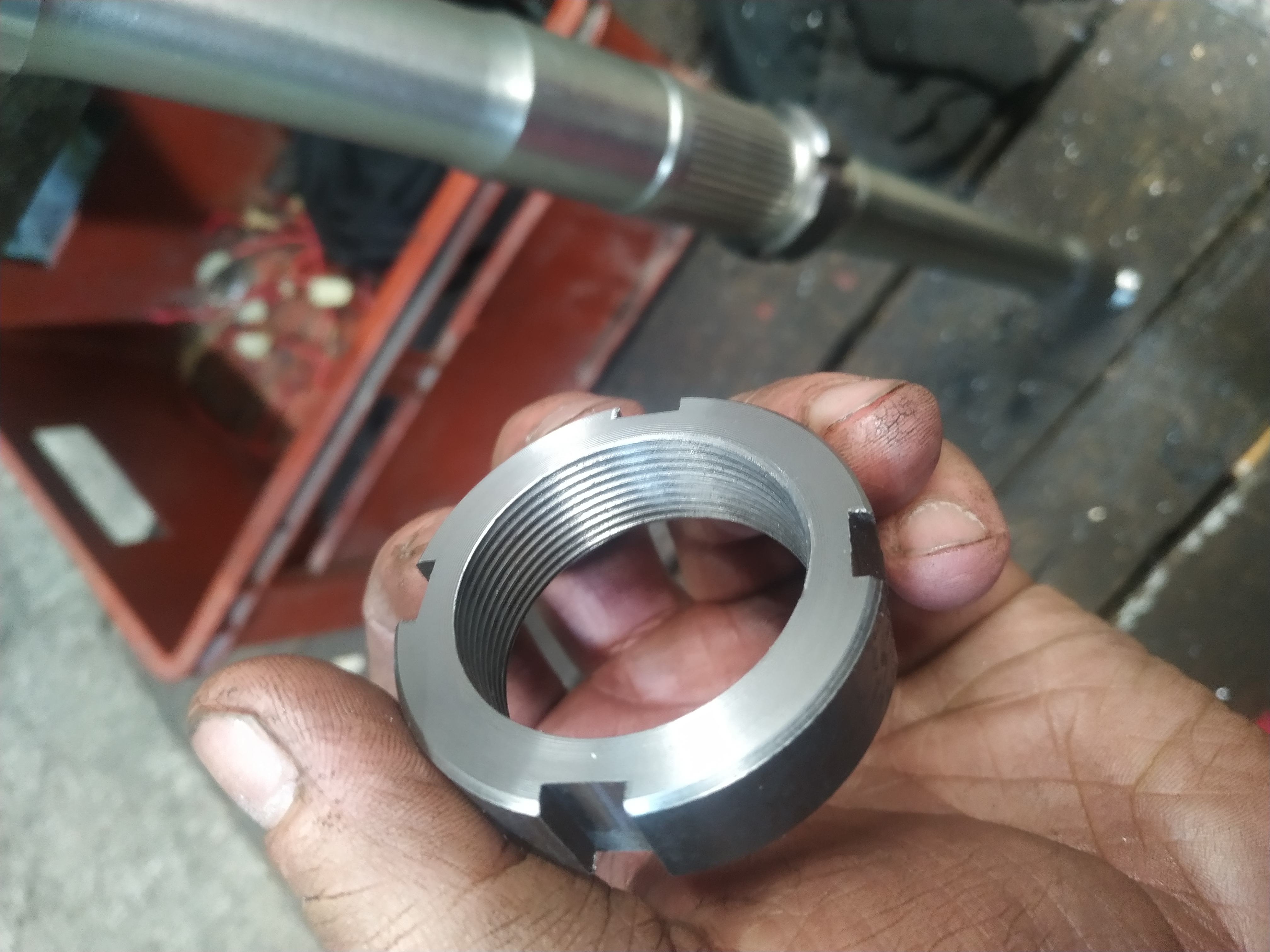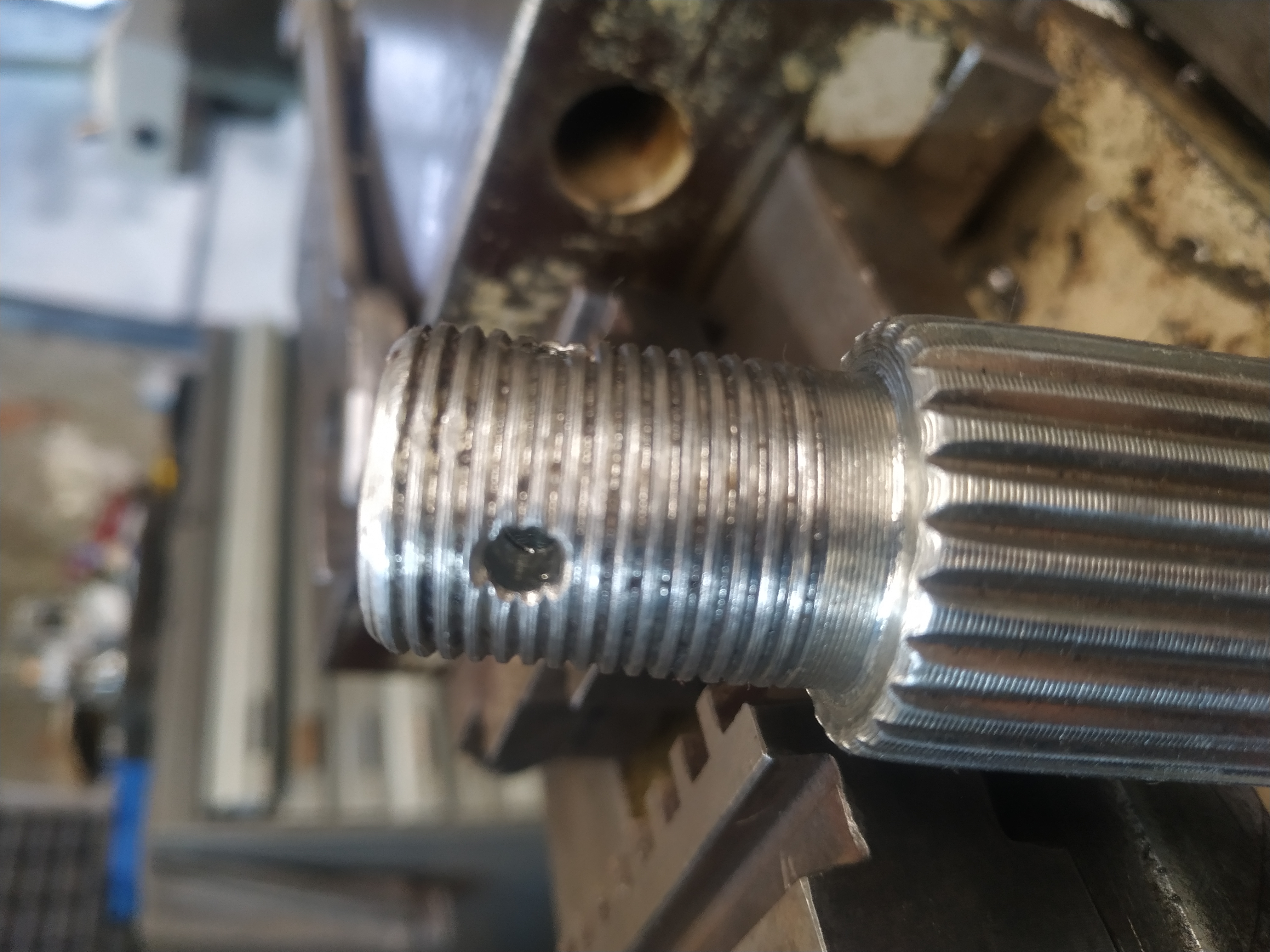 Doniesli mi hriadeľ z ATV matice k tomu nedostal. Tak zmordovane závity som ešte nevidel. Skúšal som všetky mierky jedine čo ako tak pasovalo bol metricky 1.5 MM. Závity vôbec nemali profil. Na spodu kde som robil matice boli ešte horšie ako keby bol od polovice dvojchody. Rozdiel v priemere tak 0,3 MM.