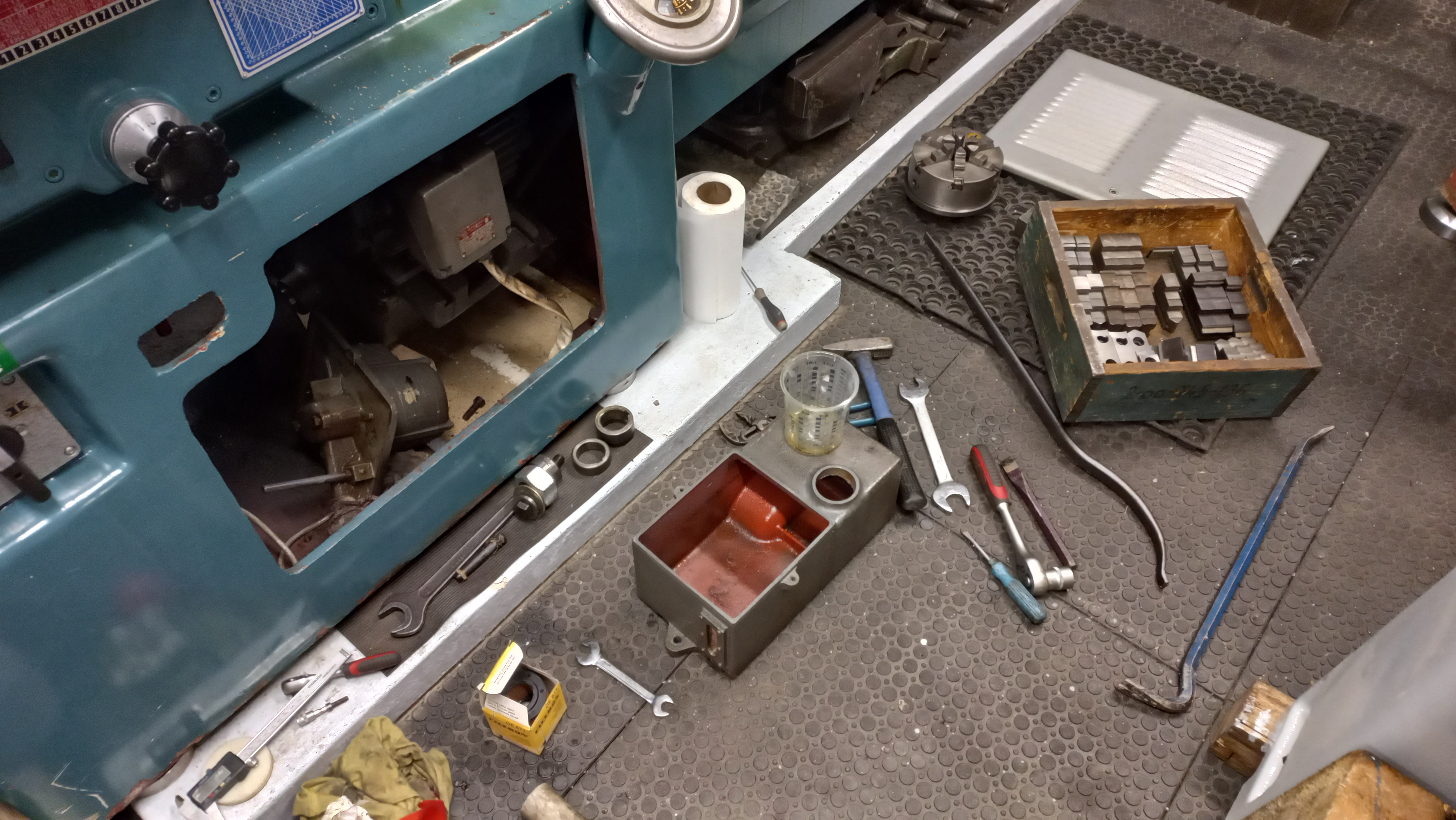 Díky za pochvalu, vačka je ten velký kotouč na šnekové převodovce, zvolil jsem velký průměr aby byla jednochá výroba a případné nerovnosti neovlivní tolik výbrus zubu, dole pod vačkou se přes páku zvedá rameno s bruskou, je tam tyčka na kloubu na druhé straně tyčky je zakalený rádius, proti tomu je šroub na jemné seřízení zdvihu.
