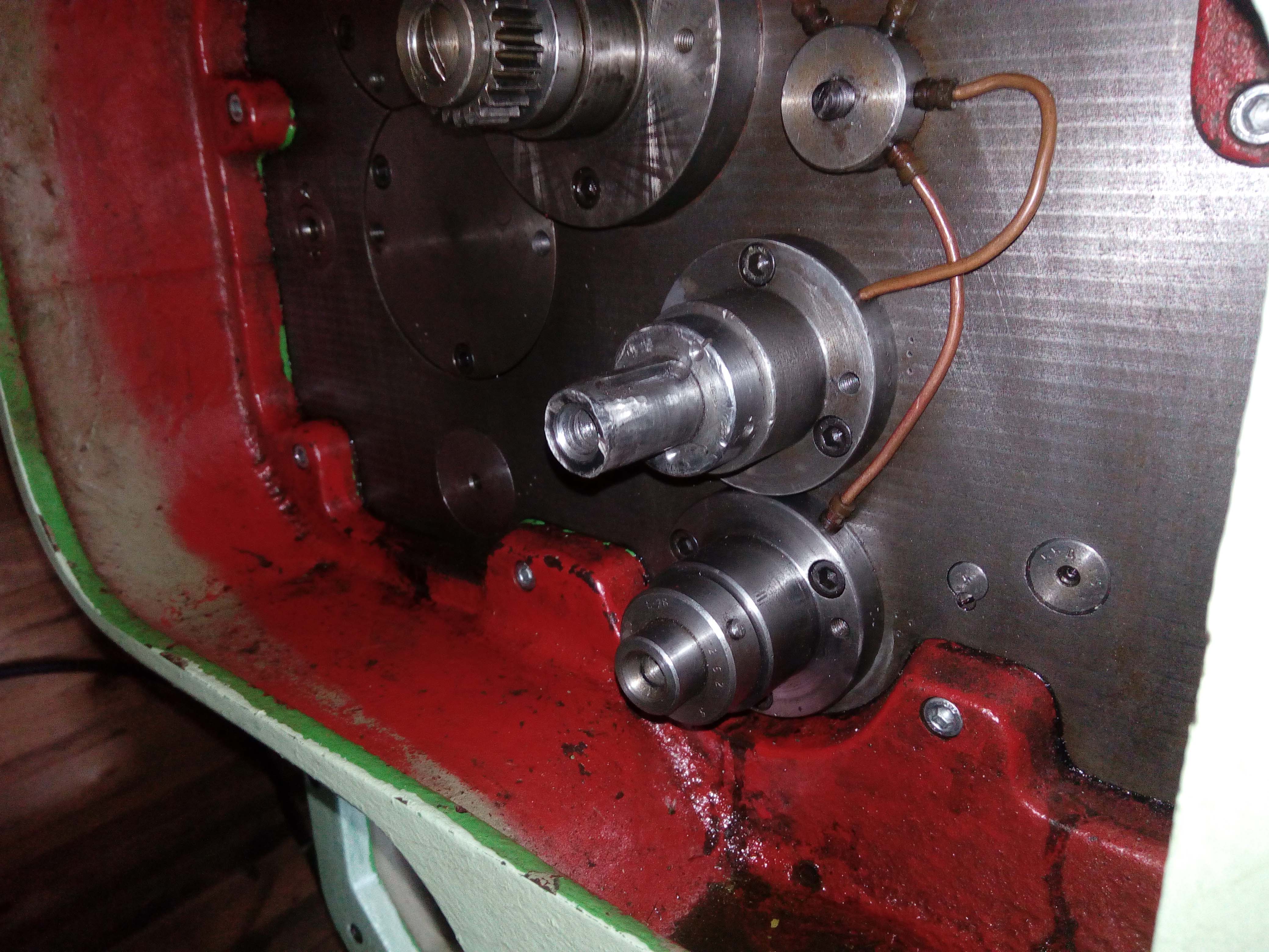 To uspořádání musí umožnit i sestavit atypické složení kol, řekněme: první kolo "na vřetenu", jedno vložené kolo a kolo na vstupu do převodovky posuvů- třeba pro atypický metrický (ale i jiný) závit. No, a hned využiješ zadní část hřídele s perem.