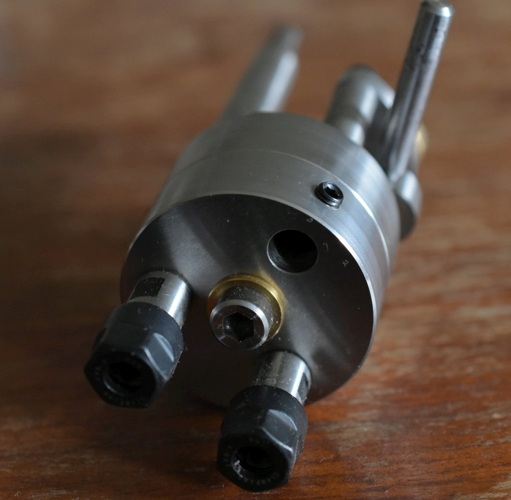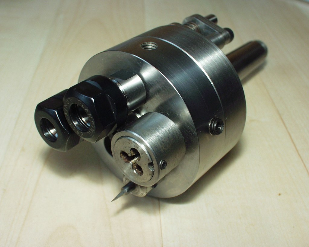 jinak ta hlava se používá hlavně v pákovém koníku, v klasickém nevidím smysl využití a soustředil bych se spíš na provedení které vyfotil Engineer. I když nebudeš mít upínače, dají se snadno vyrobit, případně asi nejlepší jsou jednorázové upínky, které si vytvoříš pro jednotlivý nástroj, protože u těchto malých až mikro průměrů se nesouosost os vřeteníku a koníku dost projeví