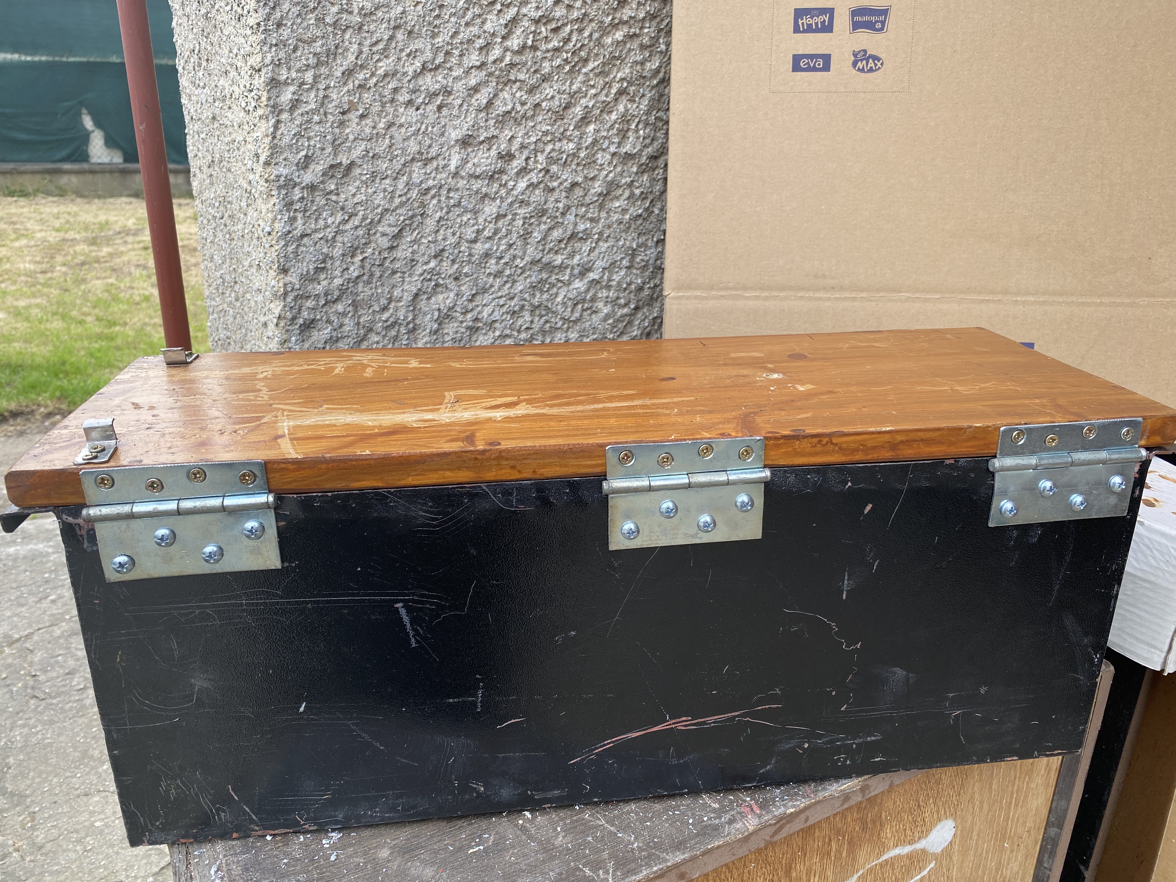 Tak jsem si udělal malinký šroťáček ,toho co dům dal. Je to spíchnuté narychlo , žádná paráda , tak aby vše bylo funkční. Ještě se zařiznou šrouby na pantech a přidělá petlice na víko