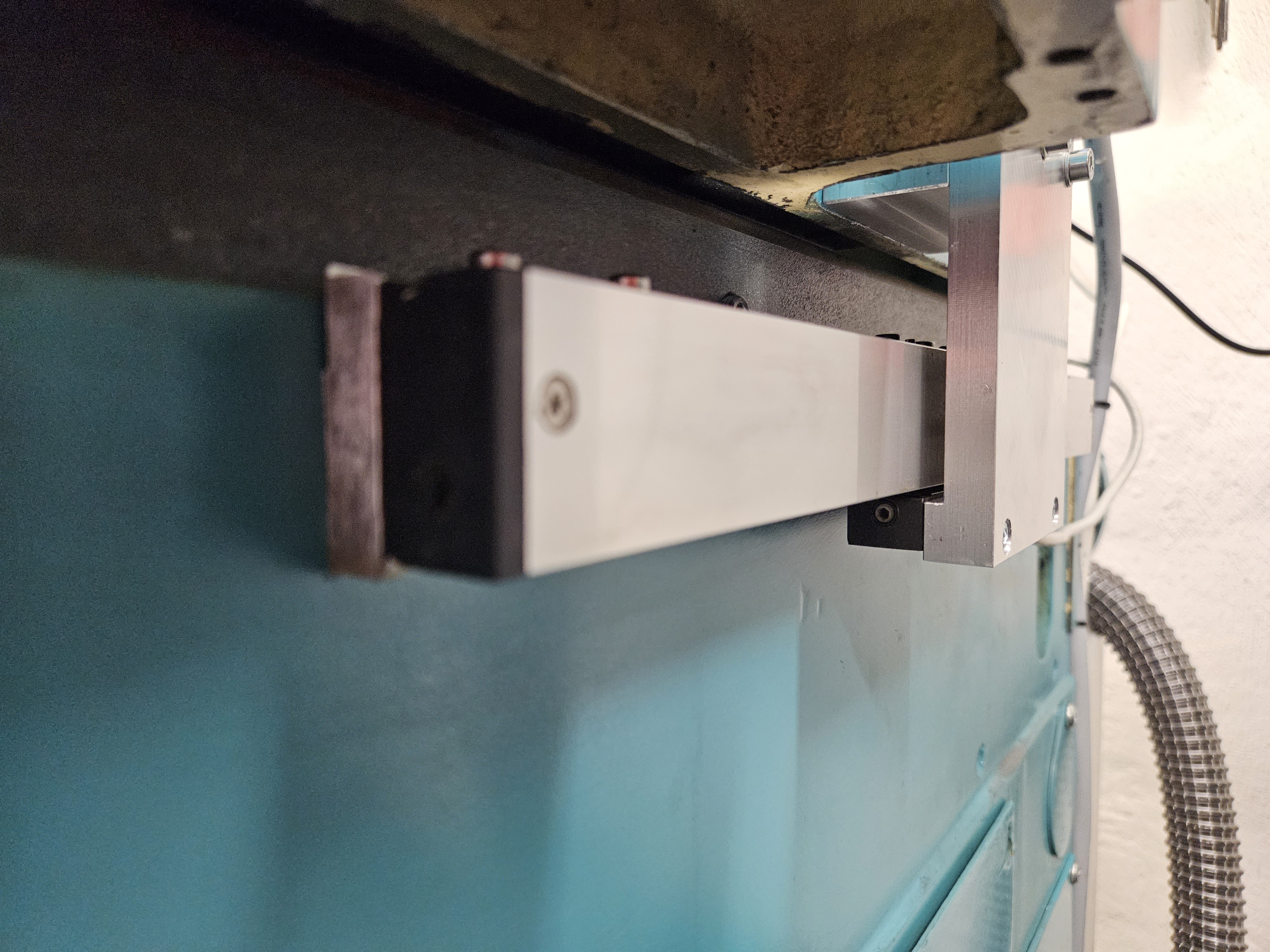 No a zapracoval jsem na DRO, nové hajdňácké pravítko od Honzy, díky, udělal jsem opravdu bytelný držák z dvou kusů aluminia, seřízeno na stovkové hodinky a spároměrky. No a jede to