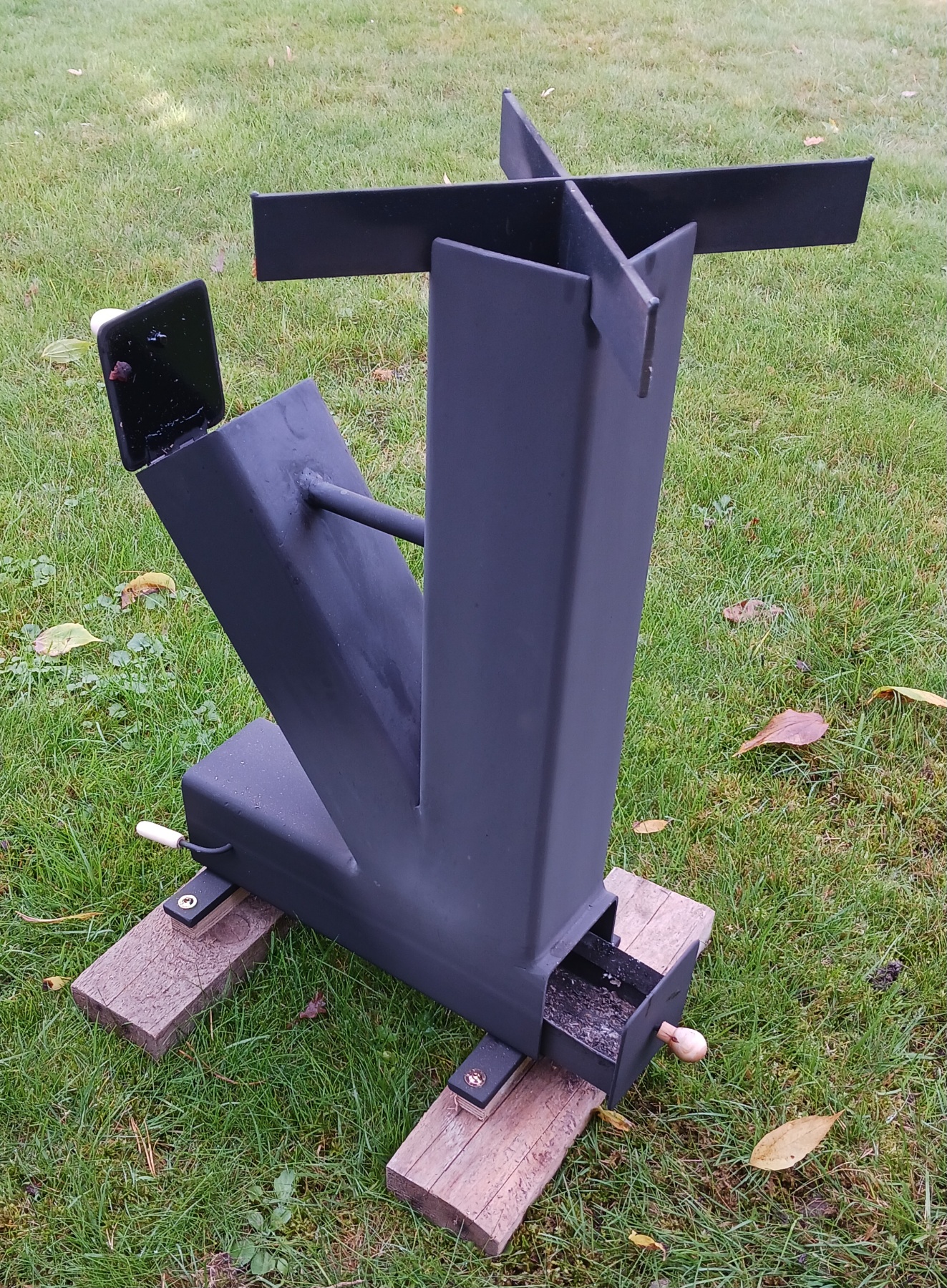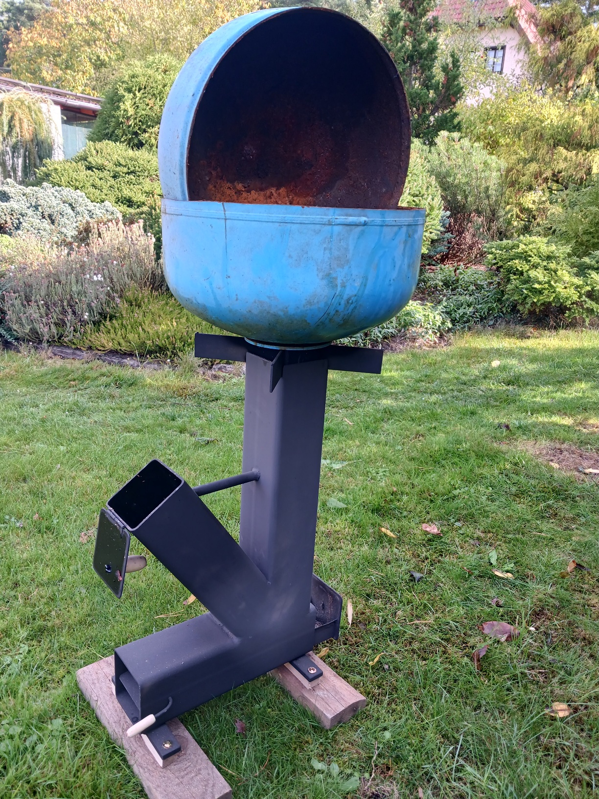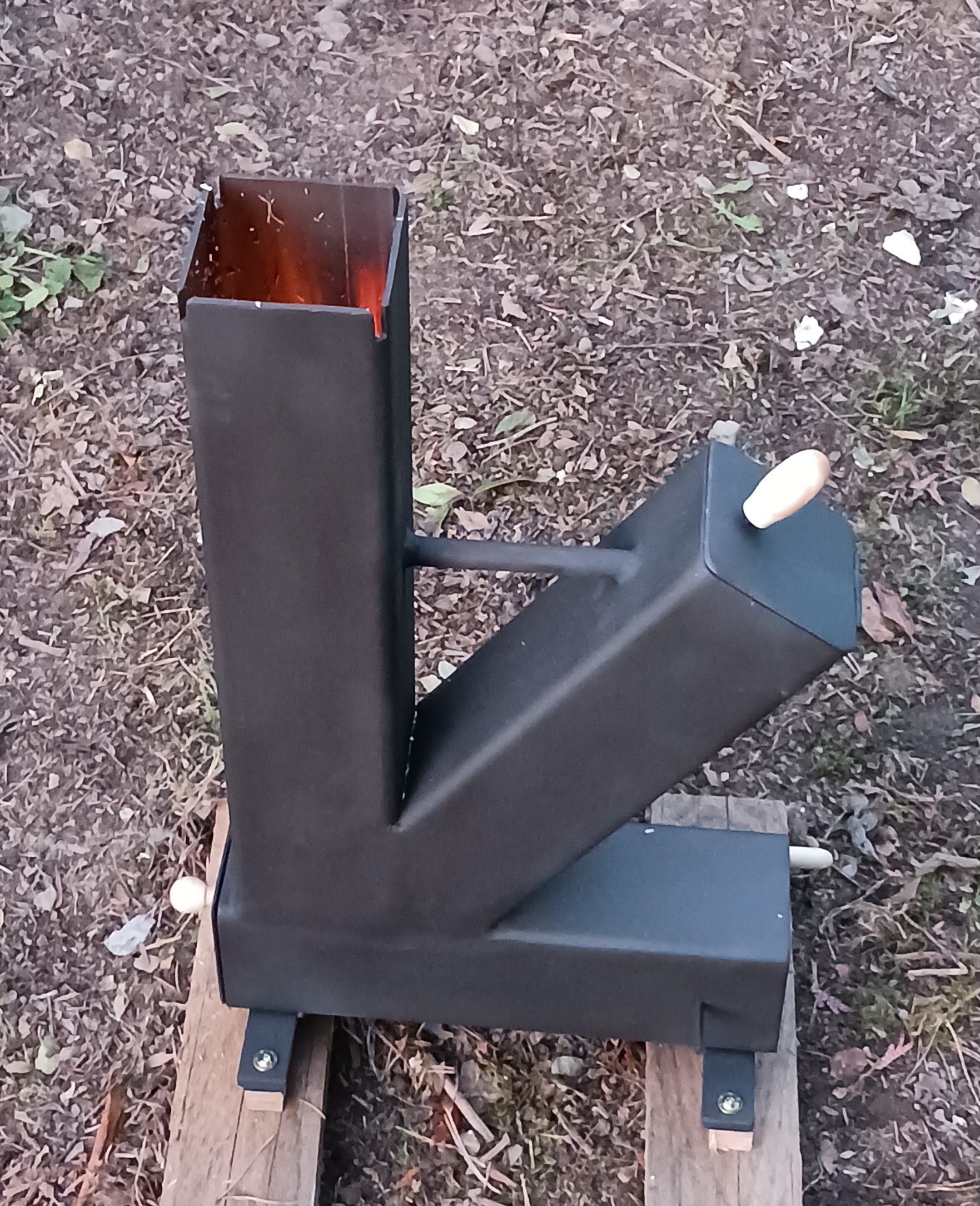 kdysi jsem taky dělal rakeťák, ale vyšší konstrukci ten svislý jekl mám tak 70cm a navařené trojnožky z trubek takže se to nekýve ani na křivém povrchu...nejlepší jsou natom klobásky, nebo kvalitní buřty... to je paráda dáš trnkové dřevo a mňames.