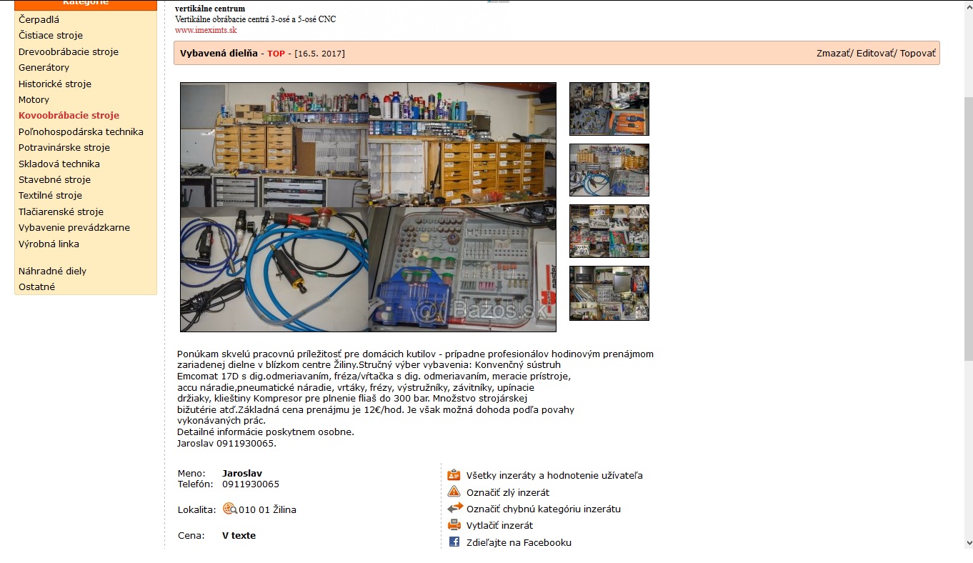 Pozerám, že už aj na Slovenasku sa dá prenajať dielňa pre hobíka. A vyzerá docela slušne.