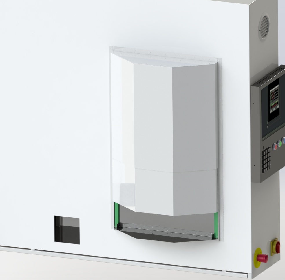 horní plech pevný spodní půlka zajíždí v kluzných lištách pod něj pomocí vzduchového válce