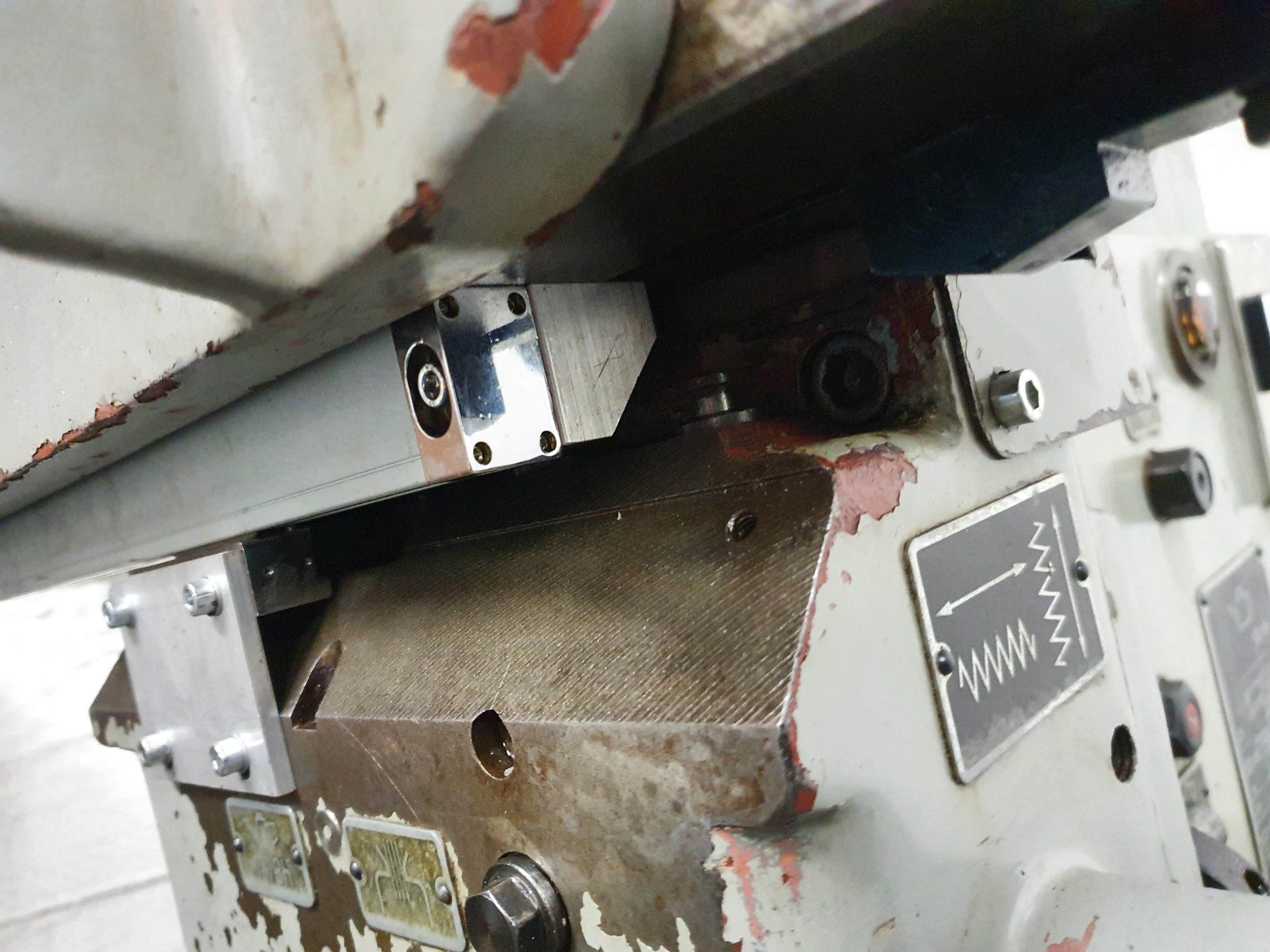 Jinak už to mám chycené, oškrábnul jsem barvu a tmel a místo šroubů jsem použil tekutý kov. Jak budu na frézce někdy dělat údržbu a rozebírat ji, tak to pak udělám pořádně na šrouby.