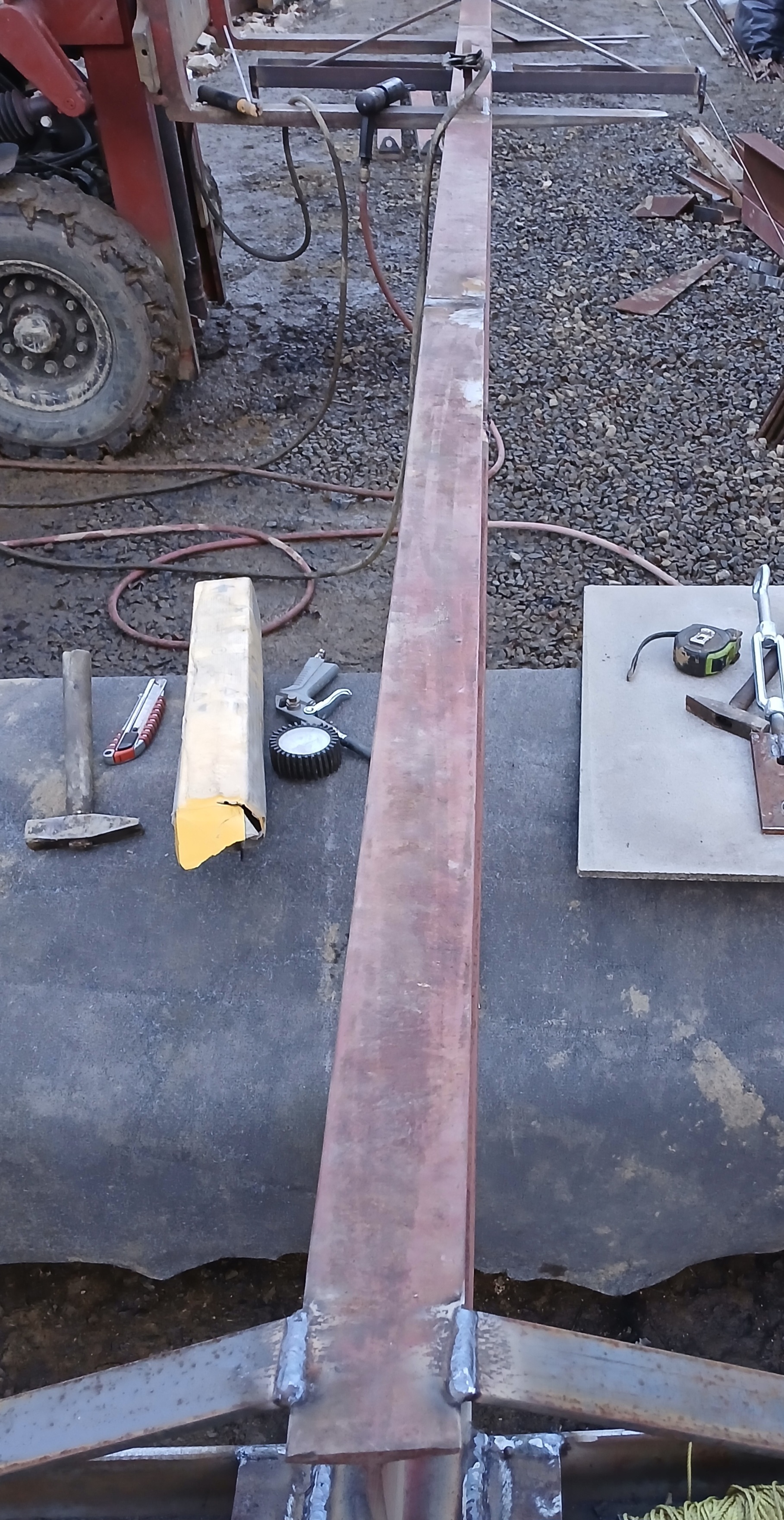 Asi tak. Chtěl jsem udělat ty dva krajní posuvný. To dodělám, až přivezou stěnový. Budou kratší. Tak to pak uřežu a překopu. Nebyl čas. Kolem toho íčka bude objímka a šroub na zajištění zeshora.