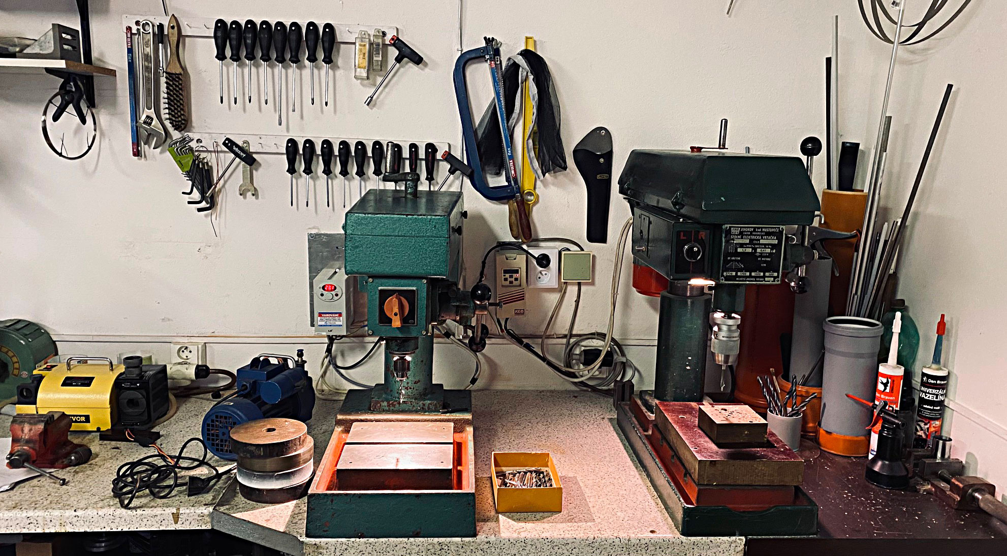 Primární úkol bylo nabrousit bedničku vrtáků mého známého. Je to invalida a pohyb mu dělá problémy, ale hlavně je levej na obě ruce. :D Byl to trochu oser, ale za hoďku mi to šlo jako po másle a vrták nabroušenej za 30 sekund.