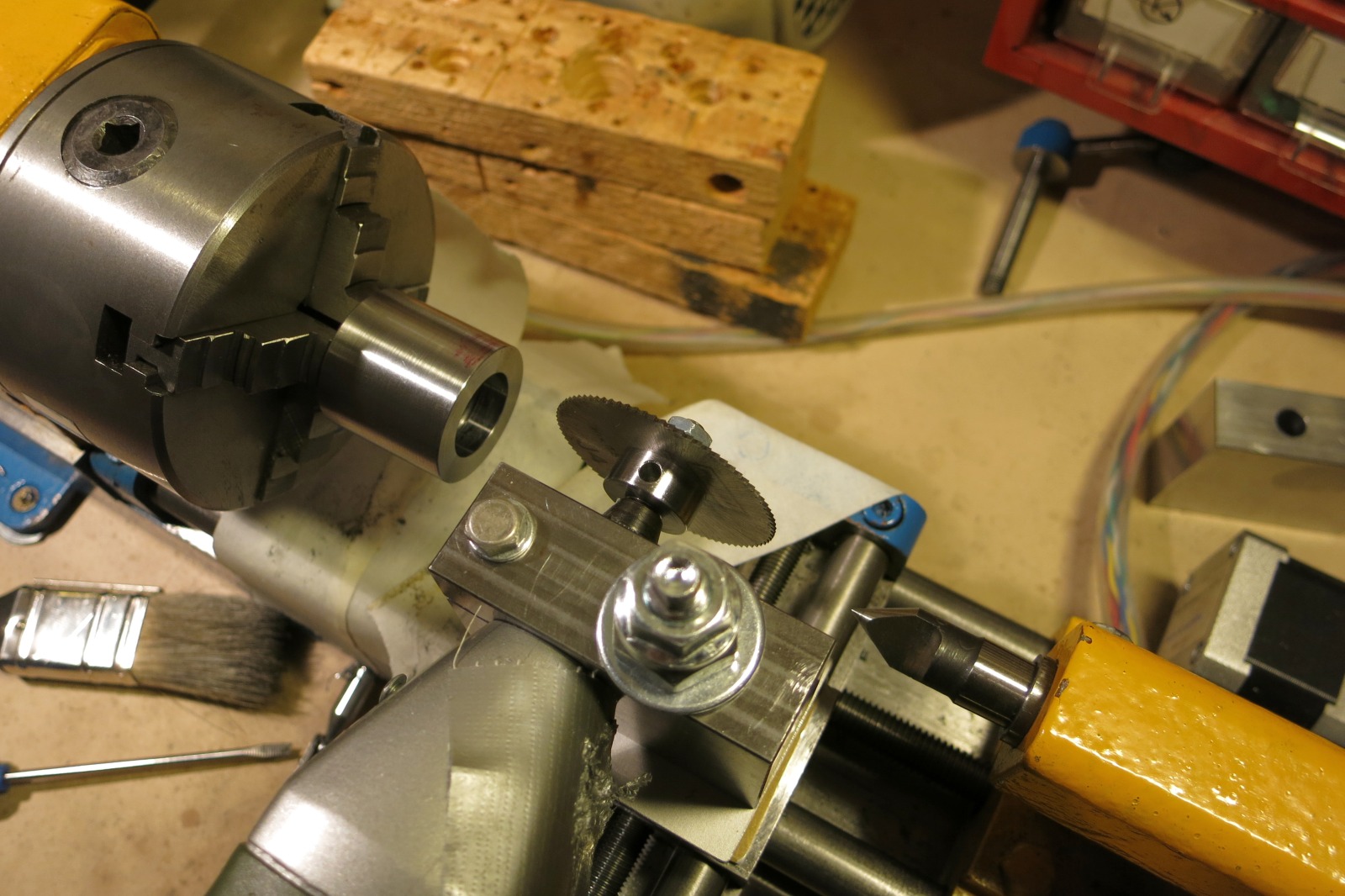 ten konec by měl být úplně co nejnižší, takhle jak to máš je to blbě, ten vnější závit ti bude zavazet až něco budeš řezat ve svěráku, no a ty podložky ???? to si děláš srandu nééThomeeque píše:Pokus o trn na upínání kotoučových pilek do Proxxona: Brou, T.