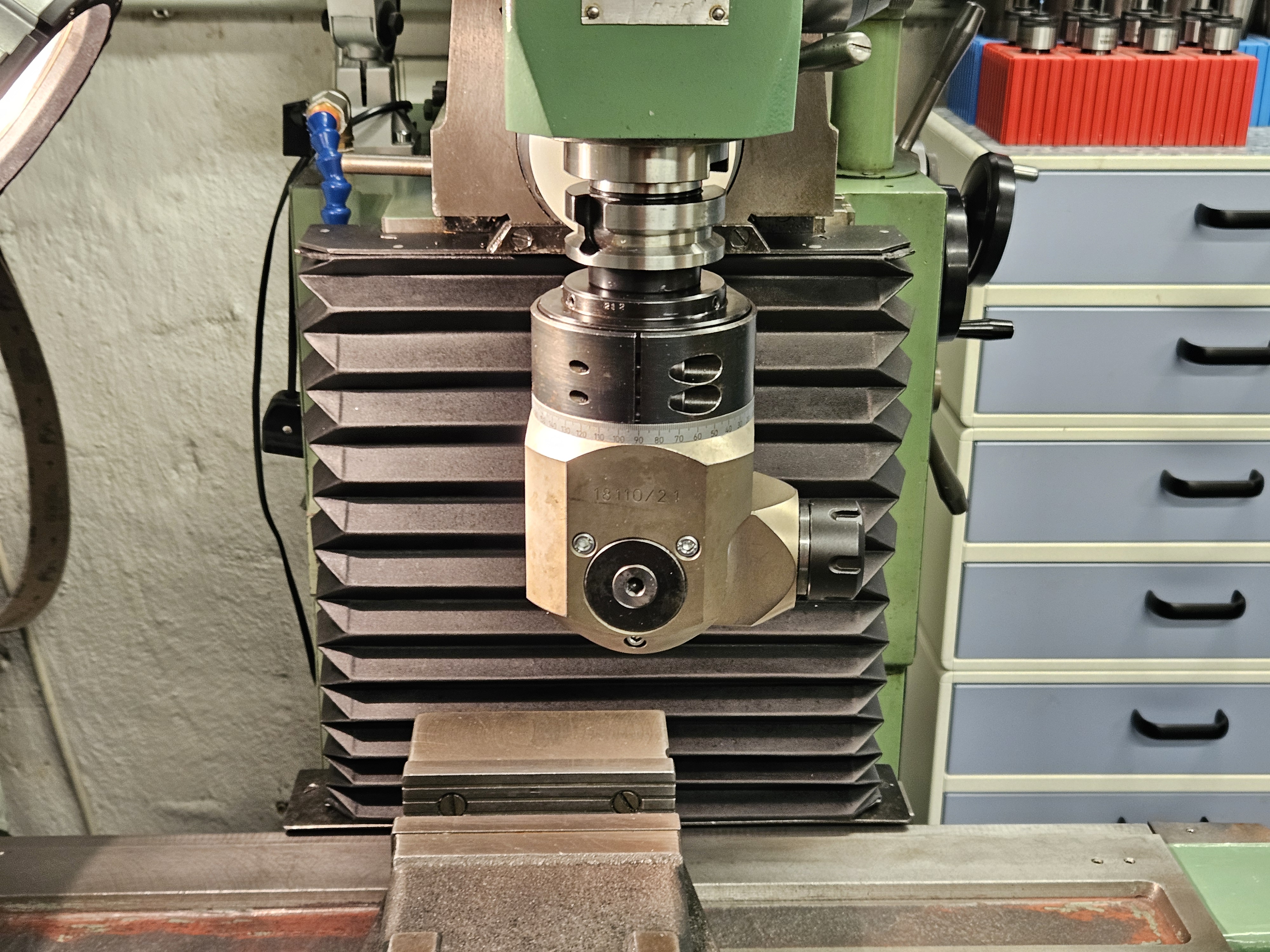 Zatím je složená bez jednoho složení ložisek ( to jsou ta co jste mi na srazu pomáhali posoudit ), potřeboval jsem oměřit a dát vypálit díl co drží trn s uchycením na stroj bez nutnosti dělat další díry. Kouká z ní ER25ka a jde nastavit plynule do všech poloh s možnou aretací po asi 15°, ale dá se utáhnout i mimo aretaci.