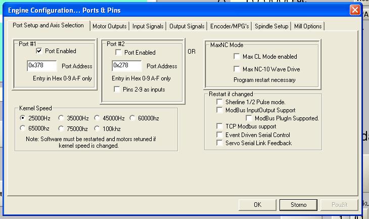 Testy delam na pc s procesorem AMD Athlon X2 5000+(3150Mhz) a mach mě nabízí poue 25khz,35khz a 45khz.Ale je zajimaví že ať dam jakoukoliv frekvenci tak v motortuningu mam pouze max 4622mm/min.Víc to proste dá pouze když snižim mikrokrokovaní.