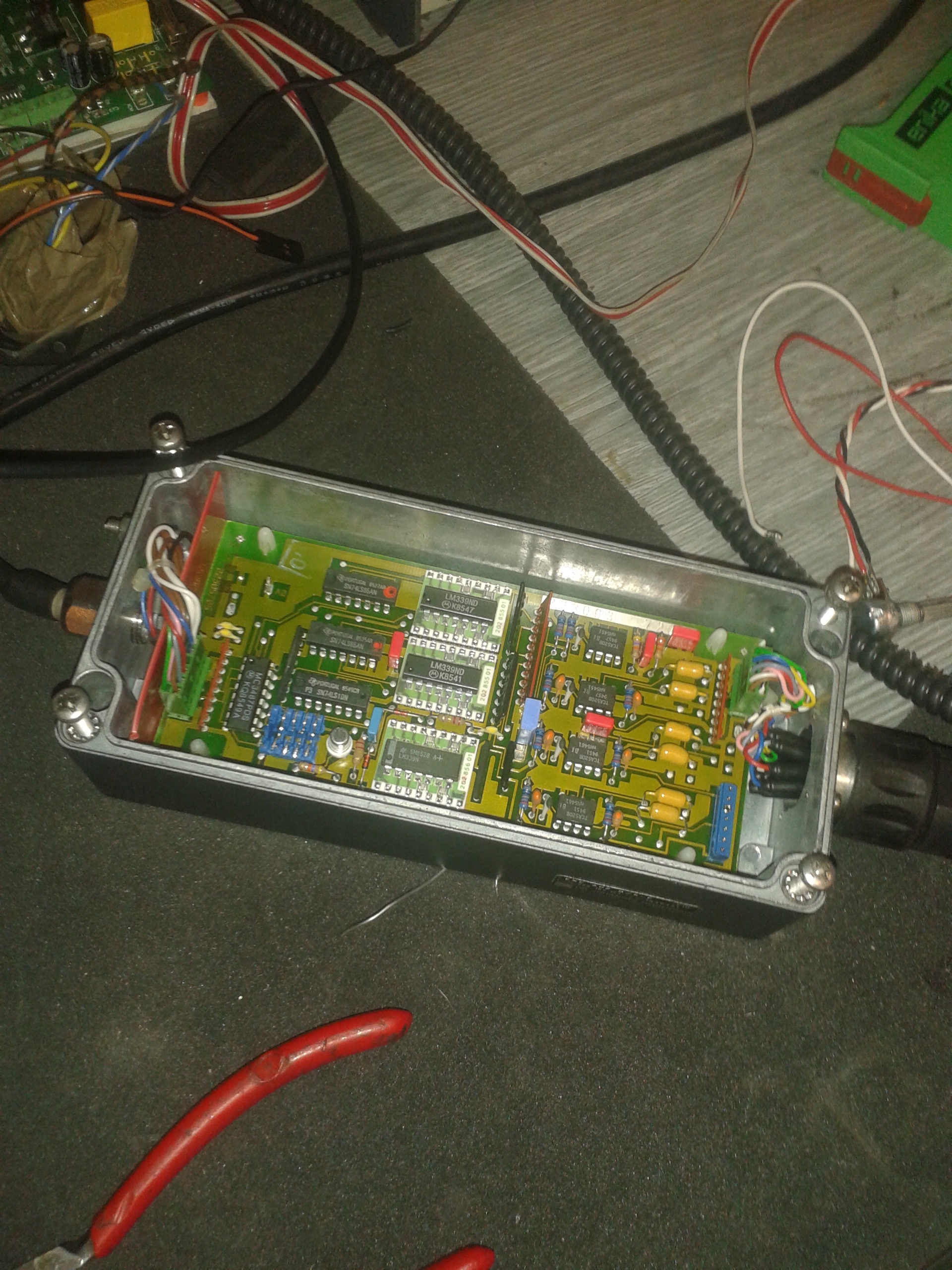 ono je to blbě nafocený a mám to v práci ale vypadá to že výstup z pravítka jde do TCA520 ( sou tam 3 kanály A B a reference) pak to jde do LM339 pak do něčeho co nepřečtu ale zjistím a nakonec je tam MC3487