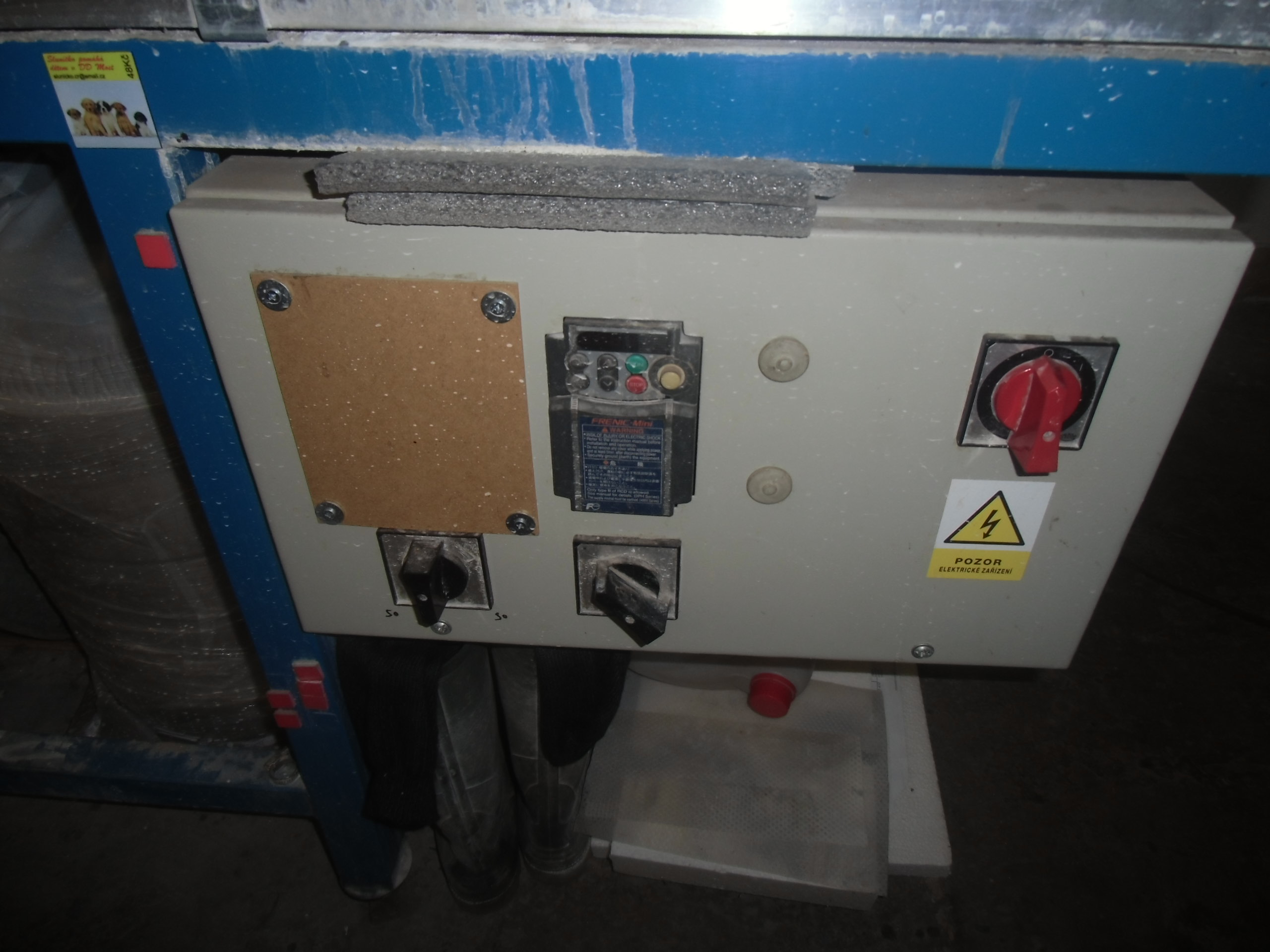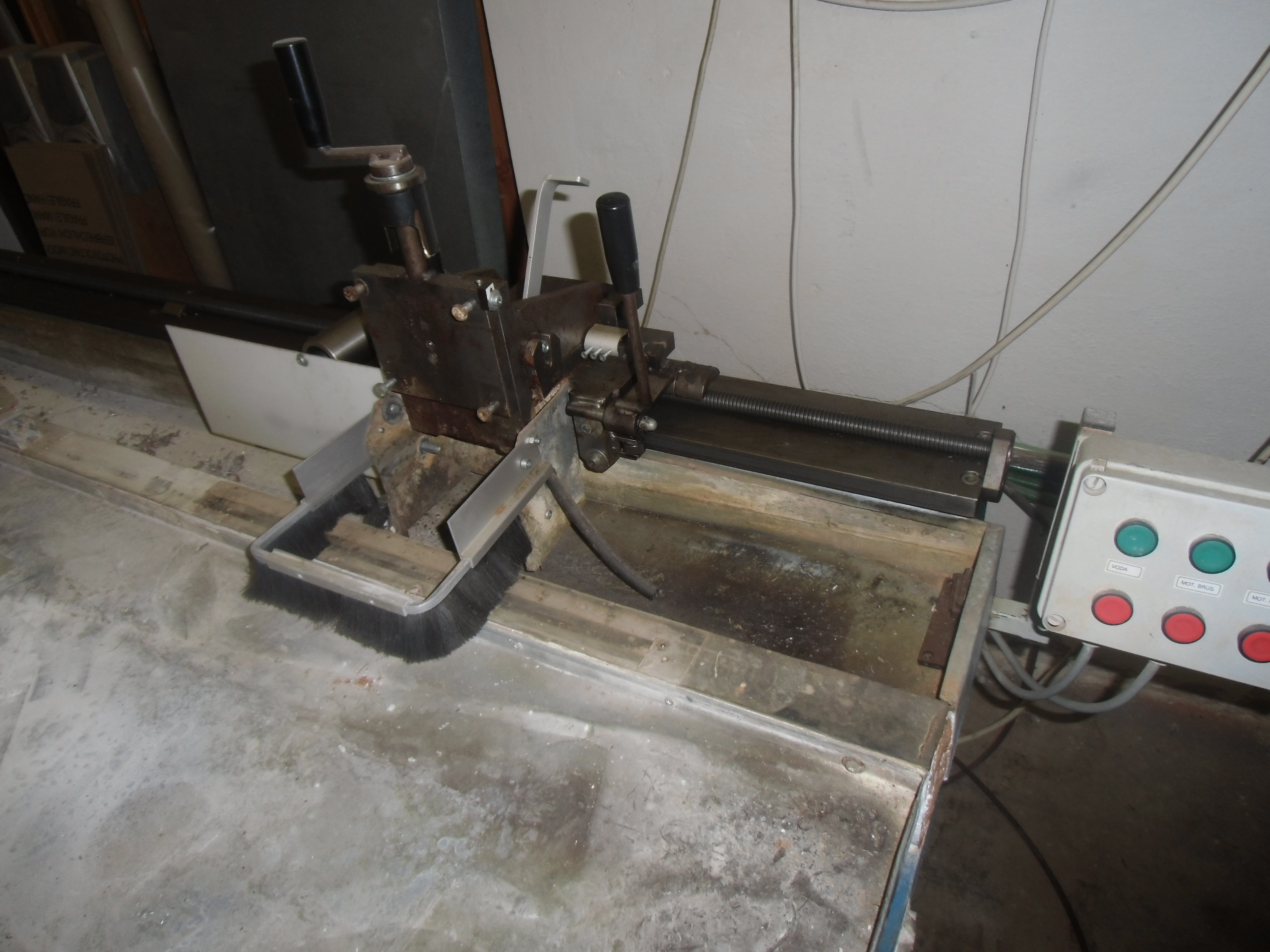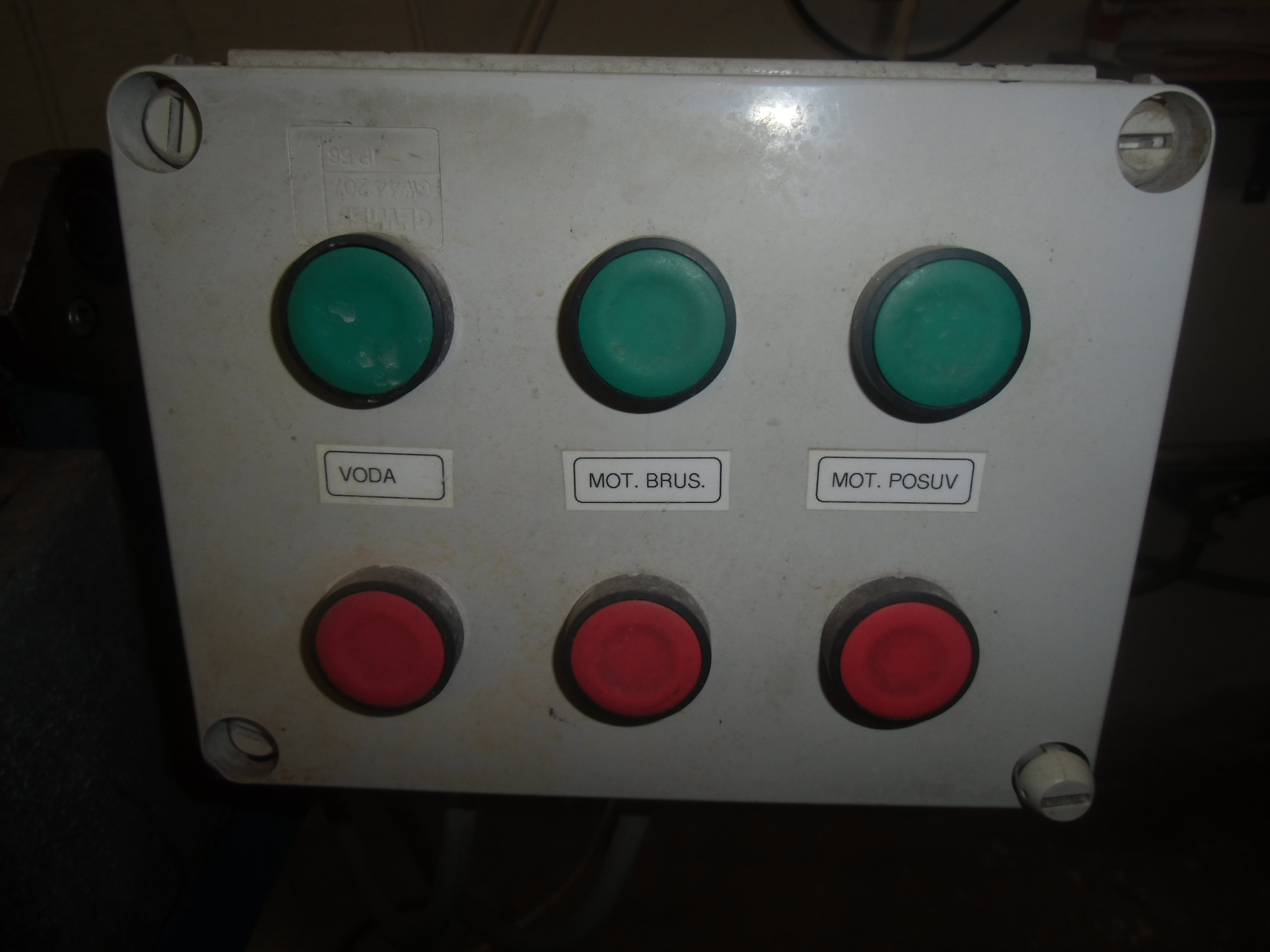 Ten bordel co je na brusce a okolo nevím kdo udělal asi trpaslíci.Taky je nemytá a nečesaná.Jinak by měla mít asi tak všechno o čem tu byla řeč,pokud má kotouč k materiálu přiléhat pružně pak by se udělala destička s pružinami pod motor-na jedné straně pant a na druhé pružiny.Motor posuvu je volitelný-momentálně 34 ot/min. mám ještě 640 ot/min.Dále se samozřejmě dají otáčky regulovat měničem,máme vyzkoušené že to jde od 8 Hz.Deska motoru se dá naklápět a zvedat + posouvat k materiálu a od něj.Kotouče se používají 50 až 150 mm průměr.Voda je na stykač přes elektroventil,ev.se tím dá ovládat něco jiného,např.čerpadlo pro oběh vody ( emulze ). Voda teče přes sběrné plechy do nádrže pod mašinou.Nyní už ji máme jen v záloze kdyby něco ale tenhle systém je překvapivě praktický-dala by se vzít inspirace i pro jiné použití.