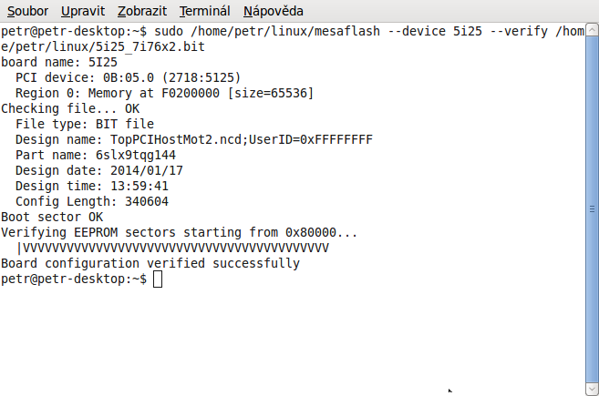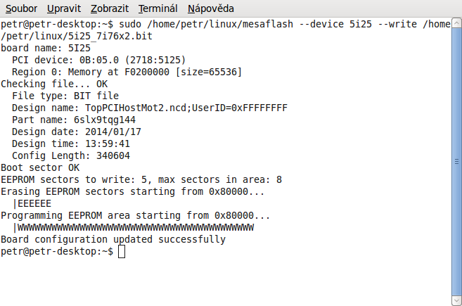 1. Na 5i25 kartě byla nálepka s flash 7i77x2.bit - použil jsem windowsácký mesaflash a nahrál do ní 7i76x2.bit podle návodu - to se asi povedlo
