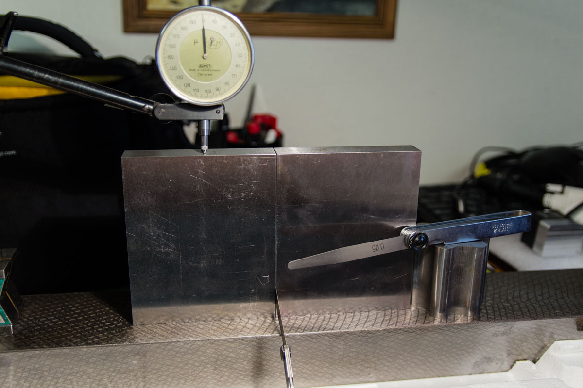 Dovolím si odpovědět za Josefa, protože mám nějaké fotky kolmostního válce v akci :) Je to opravdu nejpřesnější metoda, jak zjistit kolmost dvou ploch. Na válci je nanesena tušírovací barva, která po kontaktu s měřenou plochou vytvoří/nevytvoří opis ve formě barevné přímky tečné plochy onoho válce. Na obrázcích je opis kolmosti dvou rovin na prizmatickém vedení frézky deckel fp1, zaškrabaná rovina je vedení osy Y na kterém je položena příměrná deska, od ní pak kolmostním válcem je měřena kolmice rovin Z/Y