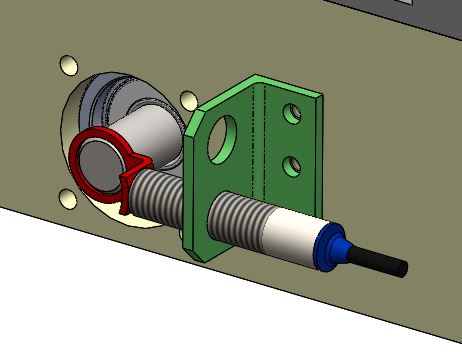 Tak další malý posun... řeším referenční snímač nulový polohy. Představa je taková, že po projetí koncáku se ještě dotočí tenhle snímač na šroubu. Tvar toho "červenýho" bude nějaký. Zde pouze pro názornost.