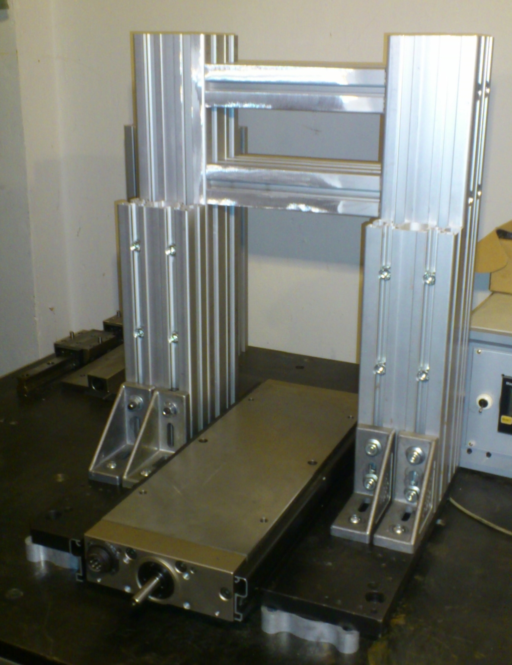 úhelníky měly zobáček ale ve styku s ocel. deskou jsem je vylomil. Vlastně tam jsou úhelníky spíše dekorativní. Hlavní část portálu jsou těžké profily 90x90 (chycené M16uprostřed a 4xM12na krajích), k tomu přitažený profil 45x90. Doufám, že to bude stabilní. Pokud ne, tak mám v plánu ještě z boku přidat ocelové vzpěry chycené do profilu a základní desky. Drobeček by ale měl být určený jen pro jemnou práci