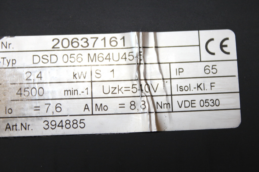 Na motoru je enkodér se zpětnou vazbou do zesilovače a bezpečostní brzda 24V.