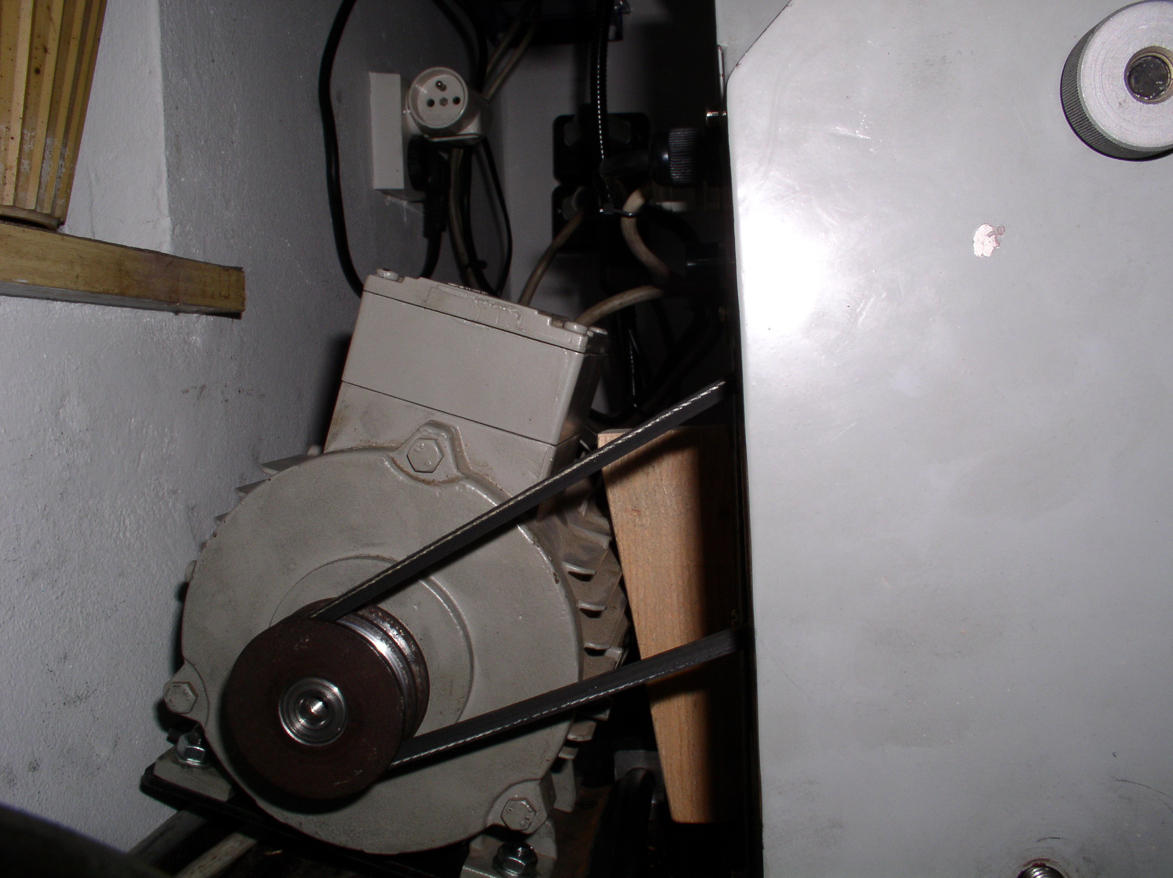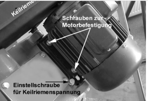 Obrázek by mohl být názornější, je z návodu, ale snad bude stačit: Princip zvratné páky - černá šipka ukazuje na šroub s kontramatkou, zašroubovaný ve výstupku "houpačky", přesahujícím kousek za její osu. Přitahováním se šroub opře o podstavu, zvedá "svoji" stranu a tím motor klesá a napíná řemen. (To šedé dole je víko převodovky ke druhé řemenici ...)1asv píše:... Jediný problém který ještě potřebuji vyřešit je nějaké jednoduché napíníní řemínků. Spoléhal jsem na vlastní váhu motoru, ale ta nestačí![]()