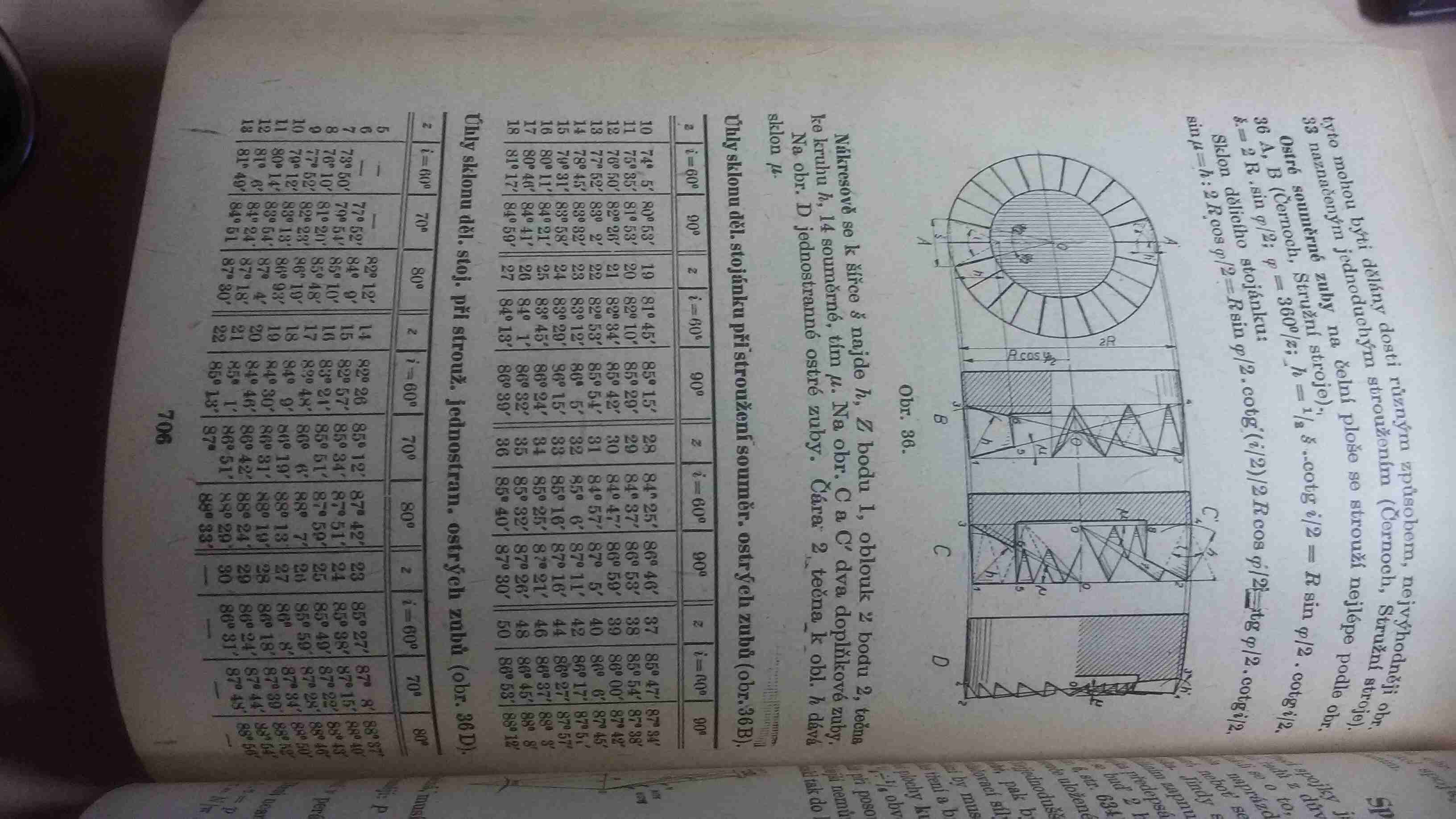 tak já jsem se k tomu dostal až teď, a abych nebyl za kecálka tak jsem ti to teda vyfotil, je to z černocha 1943, pochopitelně v části "spojky" :wink: Stroj stružní je frézka, jde o to, že to čelní ozubení se vytváří neměnným úhlem nástroje, v tabulce jsou hodnoty pro nástroj 60 a 90 st. a dále pro určitý počet zubů do cca 50 pro ideální variantu B z obrázku a k nim vztažený sklon osy děličky, respektive osy obrobku chceš-li :wink: