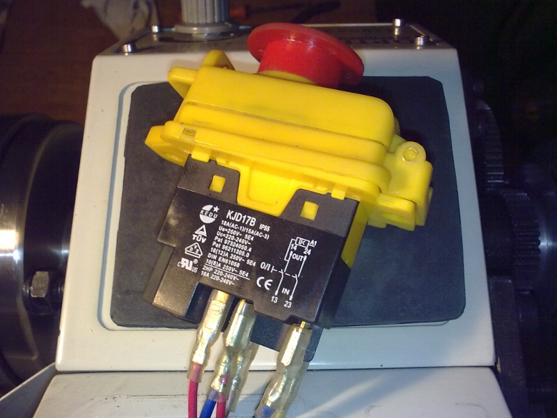 Já myslím, že to je stykač. Celá tahle sranda je tam podle mě z bezpečnostních důvodů - když dojde k přerušení napájení, a pak k jeho opětovnému naběhnutí, tak mašina se s ničeho nic zase nerozjede, nýbrž se musí opět stisknout zelený čudlík.