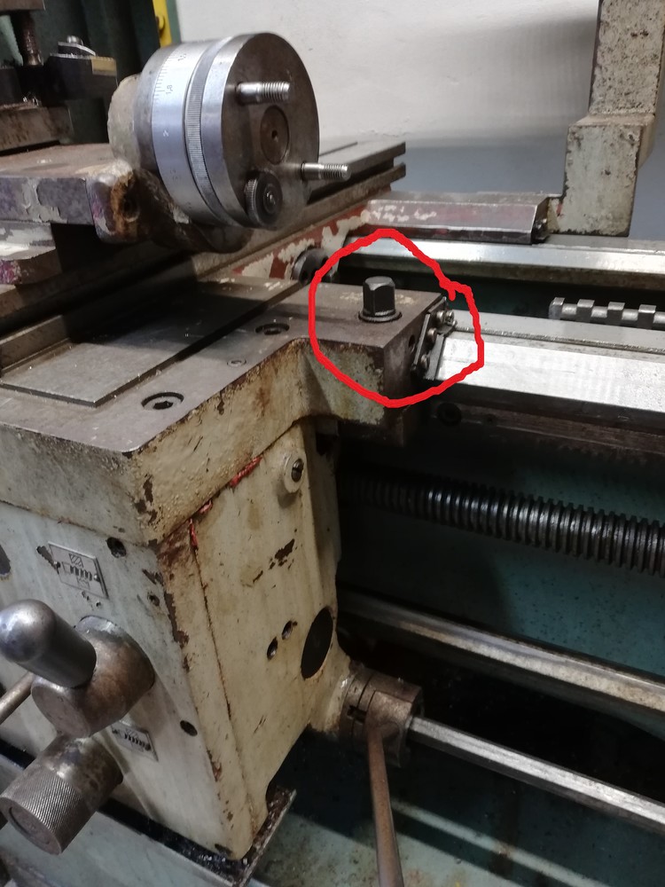 Tá "matica" slúži na aretaciu suportu , keď točíš čelo tak to zatiahneš aj v zadu je taká skrutka a pozdlzny posuv (Z) je zabrzdeny.