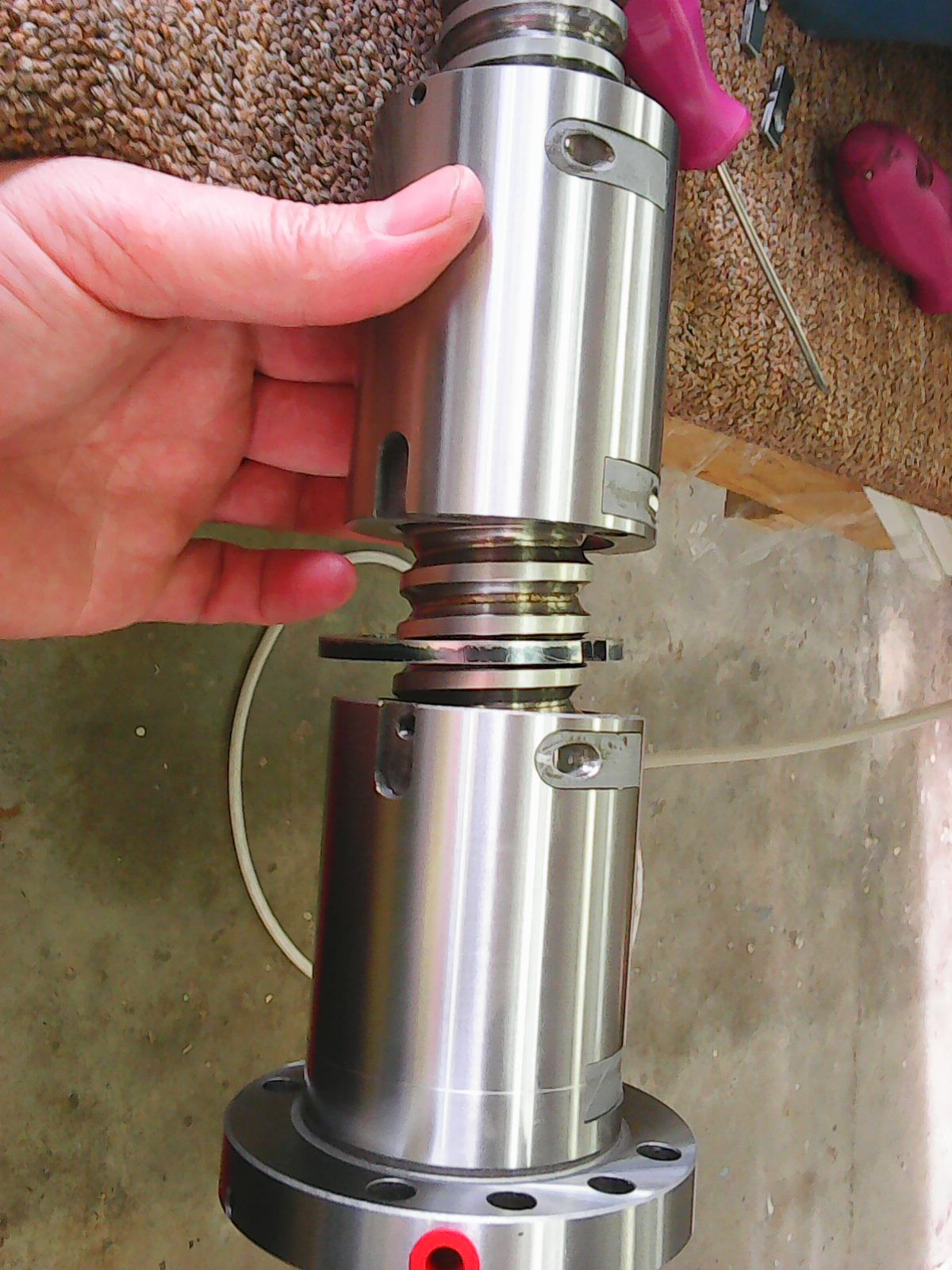 Matice jsem od sebe oddělil,tu vysypanou naplnil a matice opět přitáhl k sobě přes původní broušenou podložku a zajistil.Podotýkám že každá matice samostatně chodí správně po celé délce šroubu.
