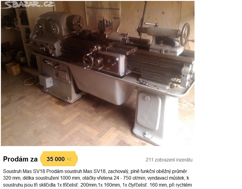 Tohle bylo v pátek. V sobotu ráno sednu ke kompu, nahodím bazoš - soustruhy a vidím úplně nový inzerát - úplně stejný typ,