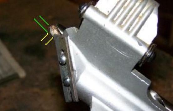 pochopil jsem ale, že daleko důležitější je srovnat broušený břit s osou otáčení přípravku (to je ta osa 12mm v kleštině) Je jedno, jak se nastaví trojúhelníkový doraz, je jen důležité, aby břit při broušení byl rovnoběžný s osou.