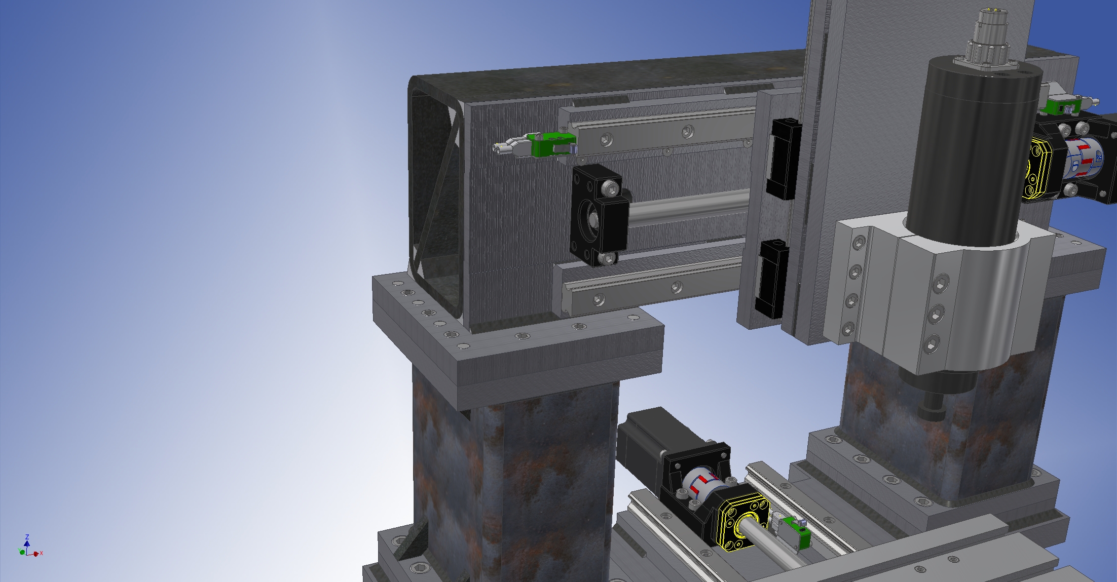 V tuto chvíli se vyrábí poslední díl konstrukce osy Z. Pak už by mělo následovat sestavení na "čisto". Abych se trochu naučil s machem a vytvořil nějaké základní nastavení koncových spínačů, seft limitů atd., sestavil jsem testovací ovládací skříň a použil běžně dostupné motory nema 23. Zde je pár fotek a video z prvních pohybu stroje