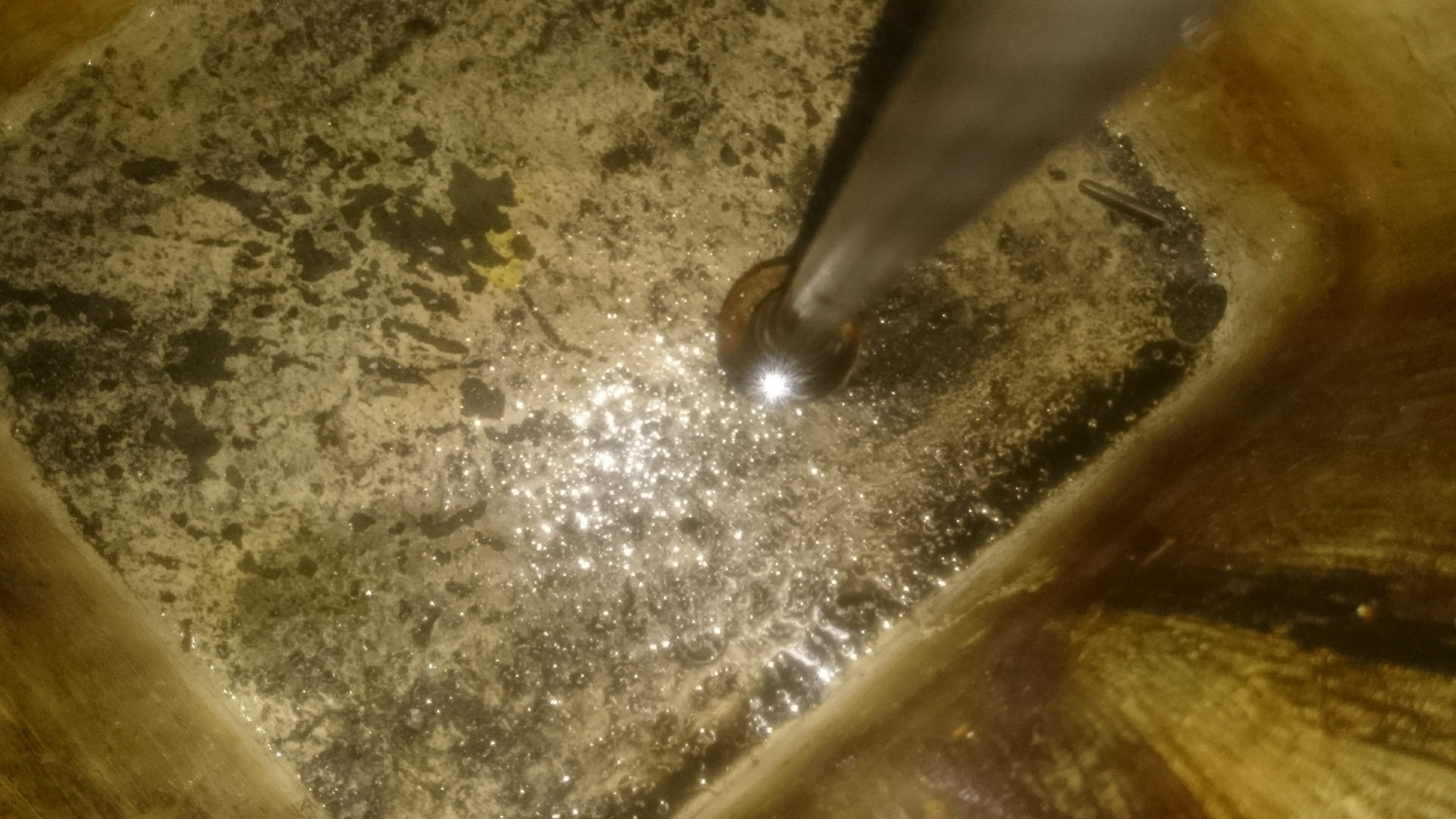 Petrolej uz je vypusteny, v olejovej vani som objavil nejaky pin: zatial som ale nezistil kam patri a zopar kovovych pilin comu sa zase nedivim.