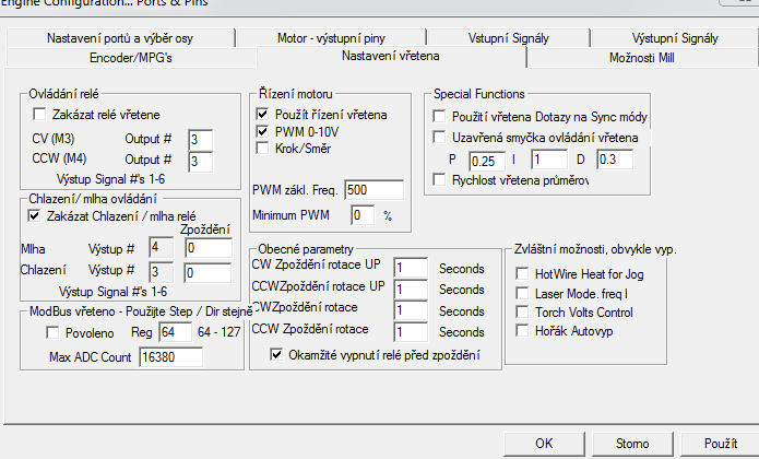Případně si na to napiš nějaký jednoduchý g-kód, kde zapneš vřeteno s nějakými otáčkami.