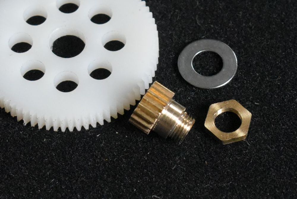 Mám tu v těch sadách kola 73-74 zubů M0,4 tedy průměr 30,00 resp. 30,40mm kus Ti nechám po 50,- pastorek na foto co jsem s ním udělal spojený kolo má 18T tedy průměr 8mm , díra 3mm. kus za 60,- Pokud Tě to zaujme, není problém se domluvit i na nějakých úpravách, ale když máš soustruh neměl by jsi s tím mít problém. :wink: