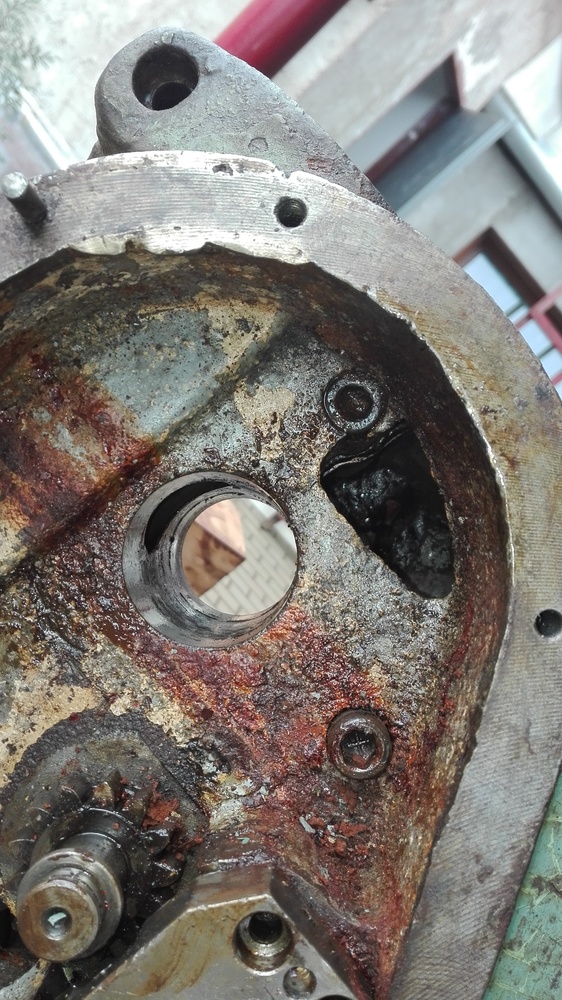 Jinak se mi zda, ze ti tam chybi takovy plechovy rozstrikovaci krouzek, kterej zamezuje vtejkani oleje z prevodovky do vretena (na fotce oznaceno sipkou kde ma byt). Novejsi tam maji pak gufero, ale to ten bakelitovej kryt pak tusim vypadal jinak