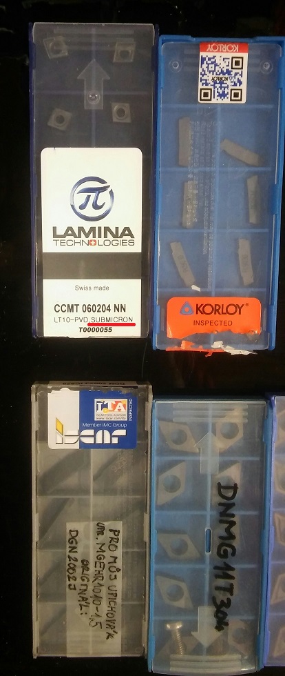 Potvrzuju, taky mam dobre zkusenosti s KORLOY. Z tech levnych co se daji koupit na eBay jsou vyborne taky "Submicron" platky LAMINA (viz obr).