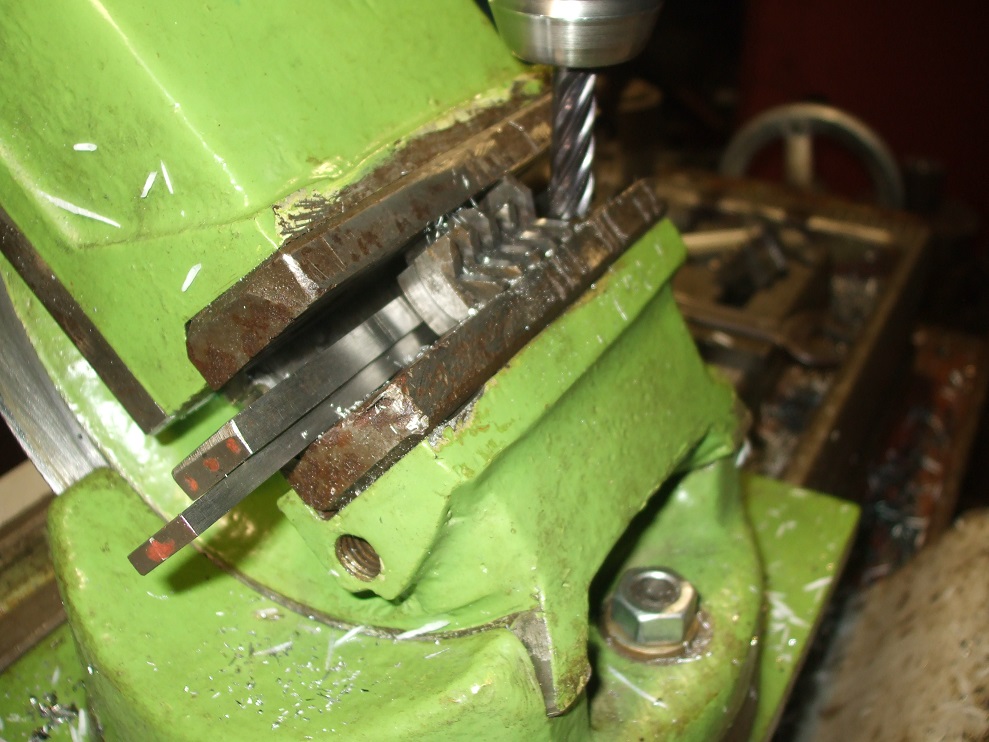 Tu 2-čeľusťovú používam na závitníky. Upravil som čeľuste na 90°. Najhoršie bolo z nich odfrézovať aby to upínalo v osi. Kaď už som bol asi na piatich stovkách, a chcel som to ešte doladiť, tak som označil opačnú čeľusť, z nej som odobral, a mohol som ladiť odznova