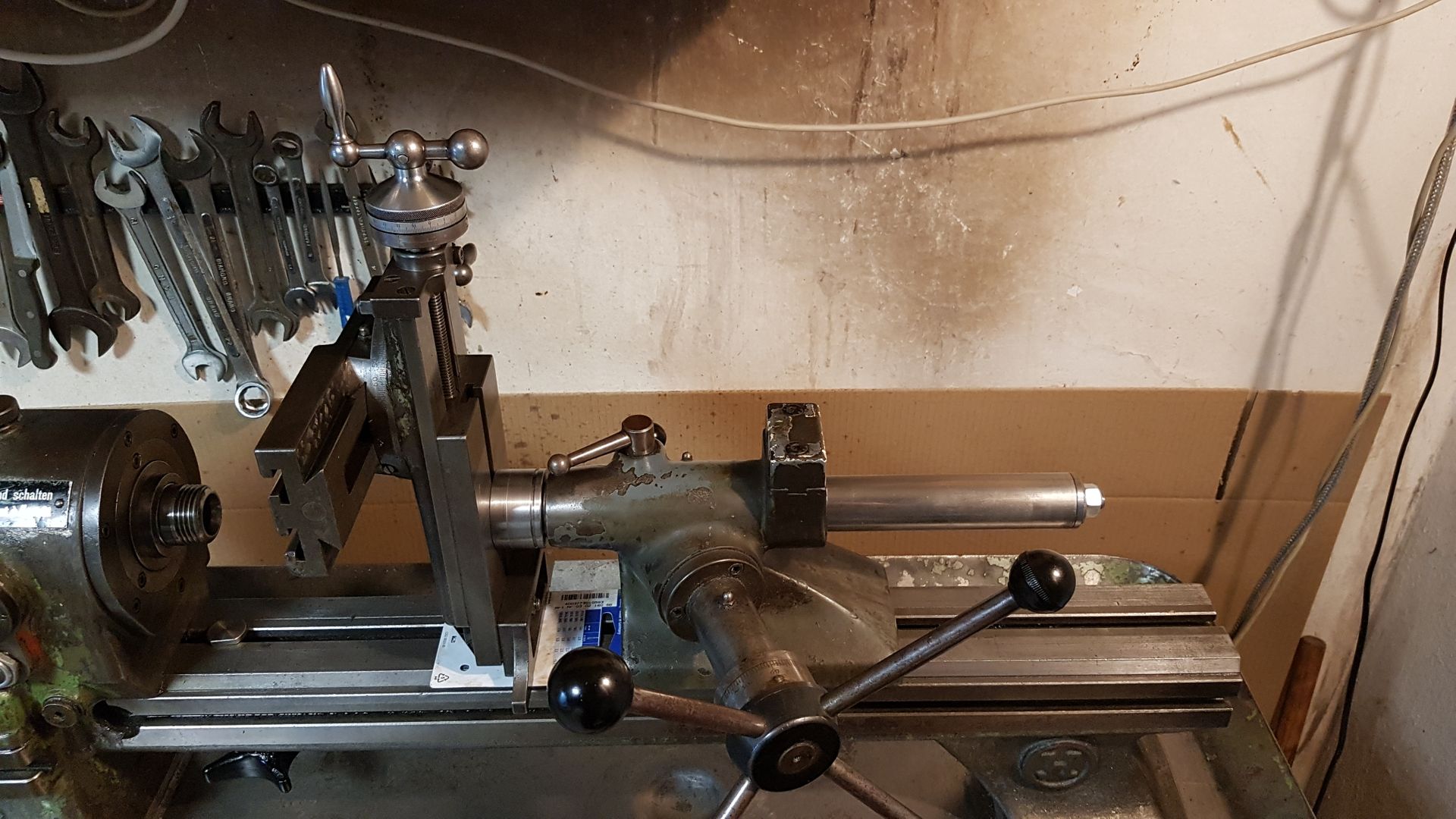 já tenhle vehement do koníka moc nechápu. Není jednodušší přidělat si svislý suport místo nožovky? Nebo do T-drážky na příčném suportu? Já to tak provozoval a na drobnosti to fungovalo.