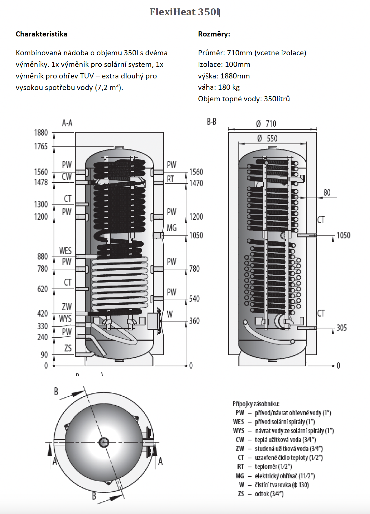 Zelené zkratky = přípojky navrhovaného předehřevu FlexiHeat 350l, jak jsem je já odhadl