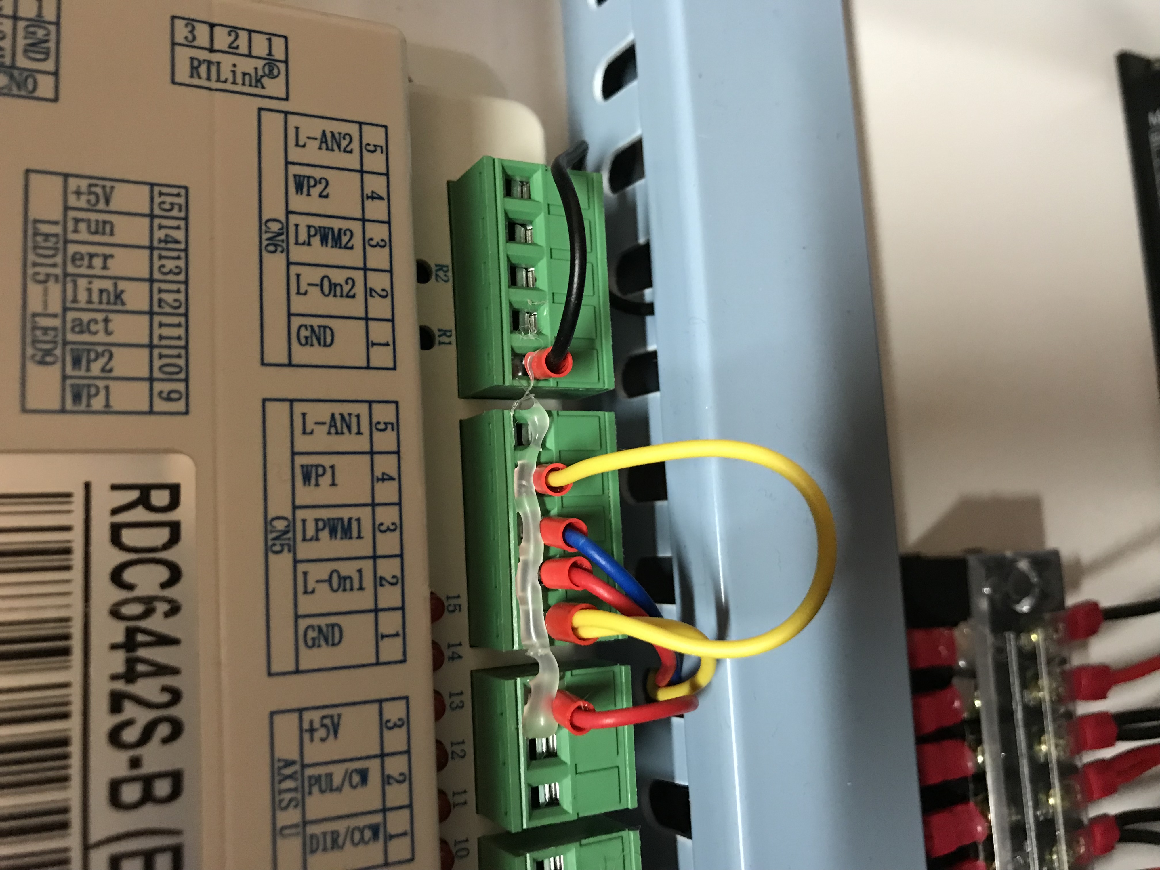pro sebe bych oddělil od sebe kabely řízení driverů (červený, žlutý, modrý) 5V logiky od výstupů na motory