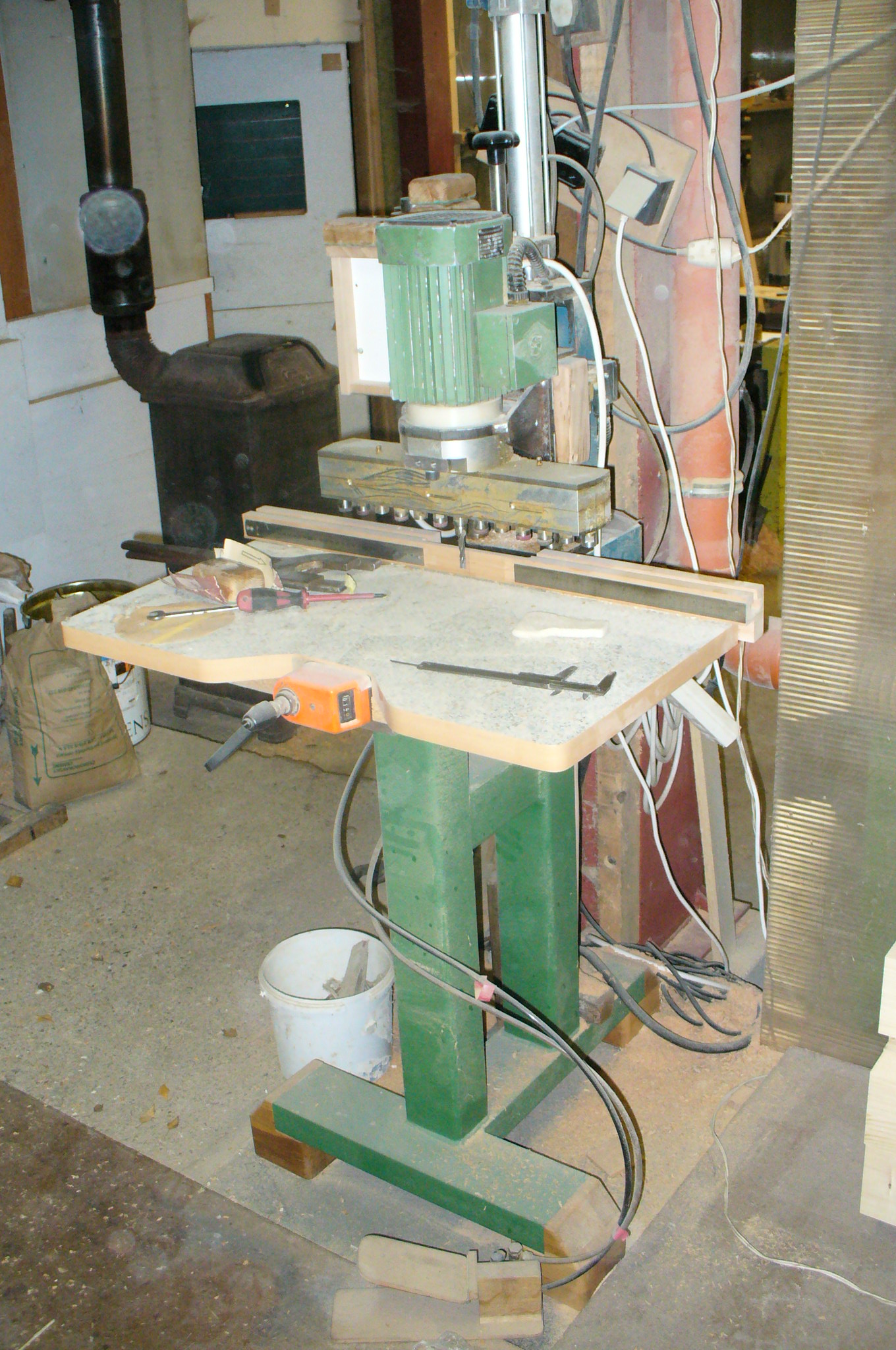 Dobrý večer,zatím jenom nasávám názory a rady.Na zetku je jenom jednoduchý šroub.Vůle na kuželovým soukolí je 0.1mm dle noniusu a na jednu otočku,tedy 1/40 .Což na výrobu konstrukčních spojů ze dřeva mě stačí.Zkusím na zetku trapéz nechat a dát pomocný vzducový píst tak 80-100v průměru.Koupím zatím jeden 8nm KM a uvidíme co zvládne a co ne.Na x a y bych dal kul.šroub. Jsou tam asi 0.3mm vůle. Posuvy na x a y jdou ručně přiměřeně lehce,a podle kamaráda,který má už zmotoryzovanýho malýho čínana,líp jak jemu. A to ta má 2.5nm KM. Vůle x a y dohromady podle hodinek do 0.05mm. Na jednu stranu 1m stolu jsem přilepil hodinky a na druhý straně stolu jsem s tím rumploval a víc jak o 0.05 se to nehlo.A ještě pár fotek co ,už jsem slepil.Honza
