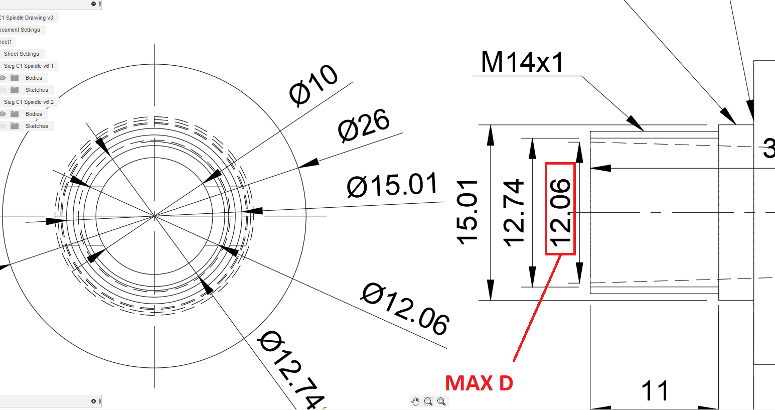 Ještě tam mám chybu - průměr vnitřní hrany závitu by měl být 12,74 a ne 12,4 jak jsem psal - takže Tomík naměřil správně tloušťku 0,338mm na kraji.