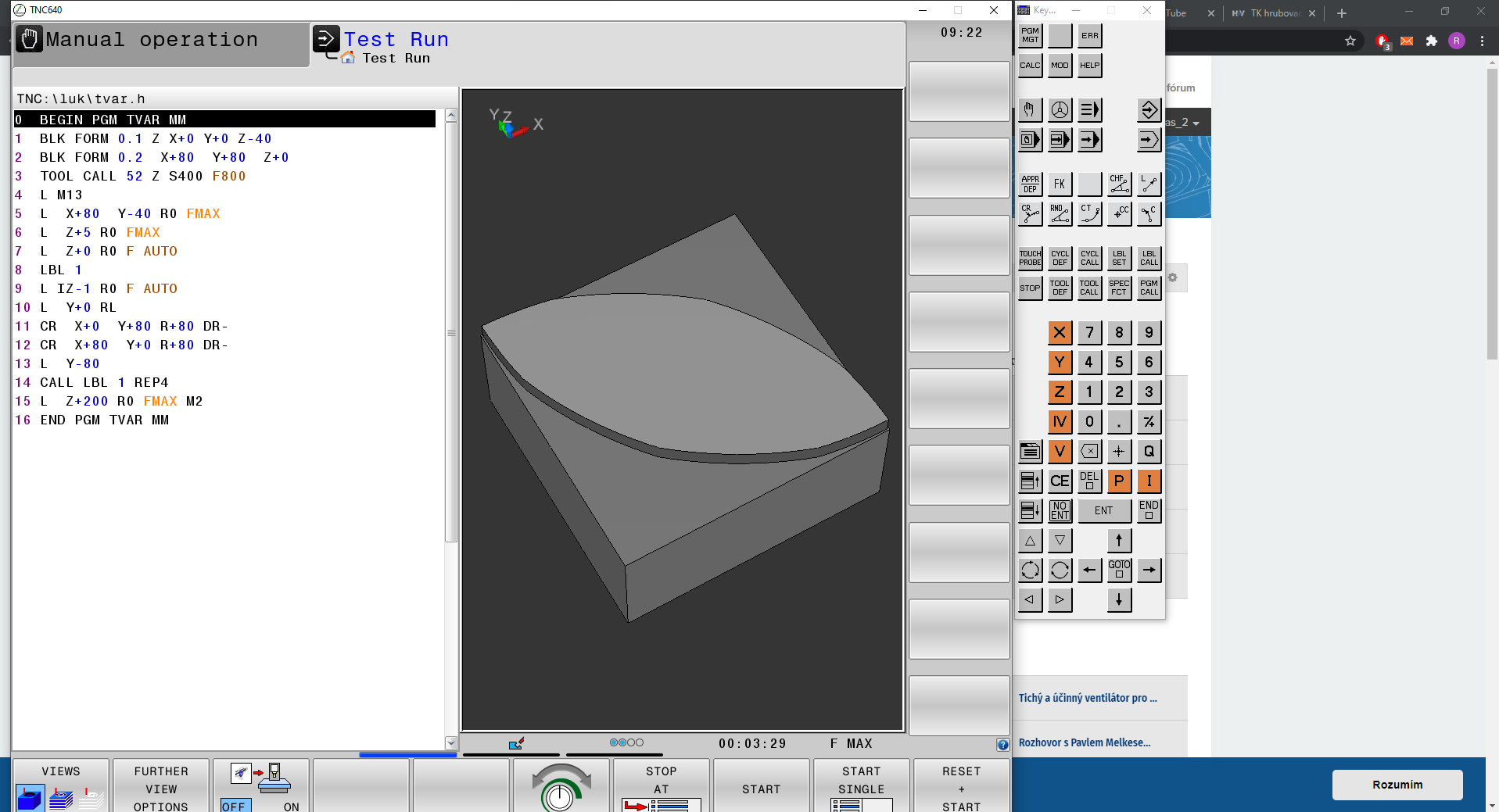 nějak takto. Před ten lbl call dej jen tool call a M13. Zbylé řádky jsou zbytečné, stačí že ty nájezdy budou v tom LBL1.