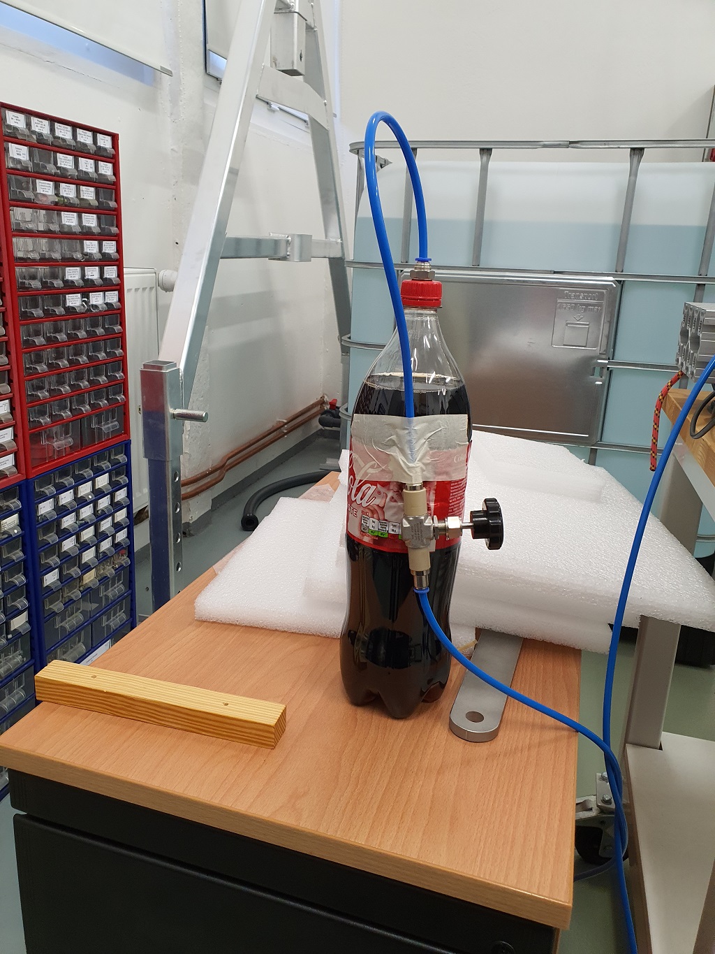 Pro efekt vystřelení kapaliny z láhve musím pomoci CO2 se z kapaliny uvolnit - to mohu těmi bublinkami vzduchu, nebo hrubým povrchem mentolového bombónu ... nebo i papírovým brčkem, které také pomáhá uvolňovat CO2