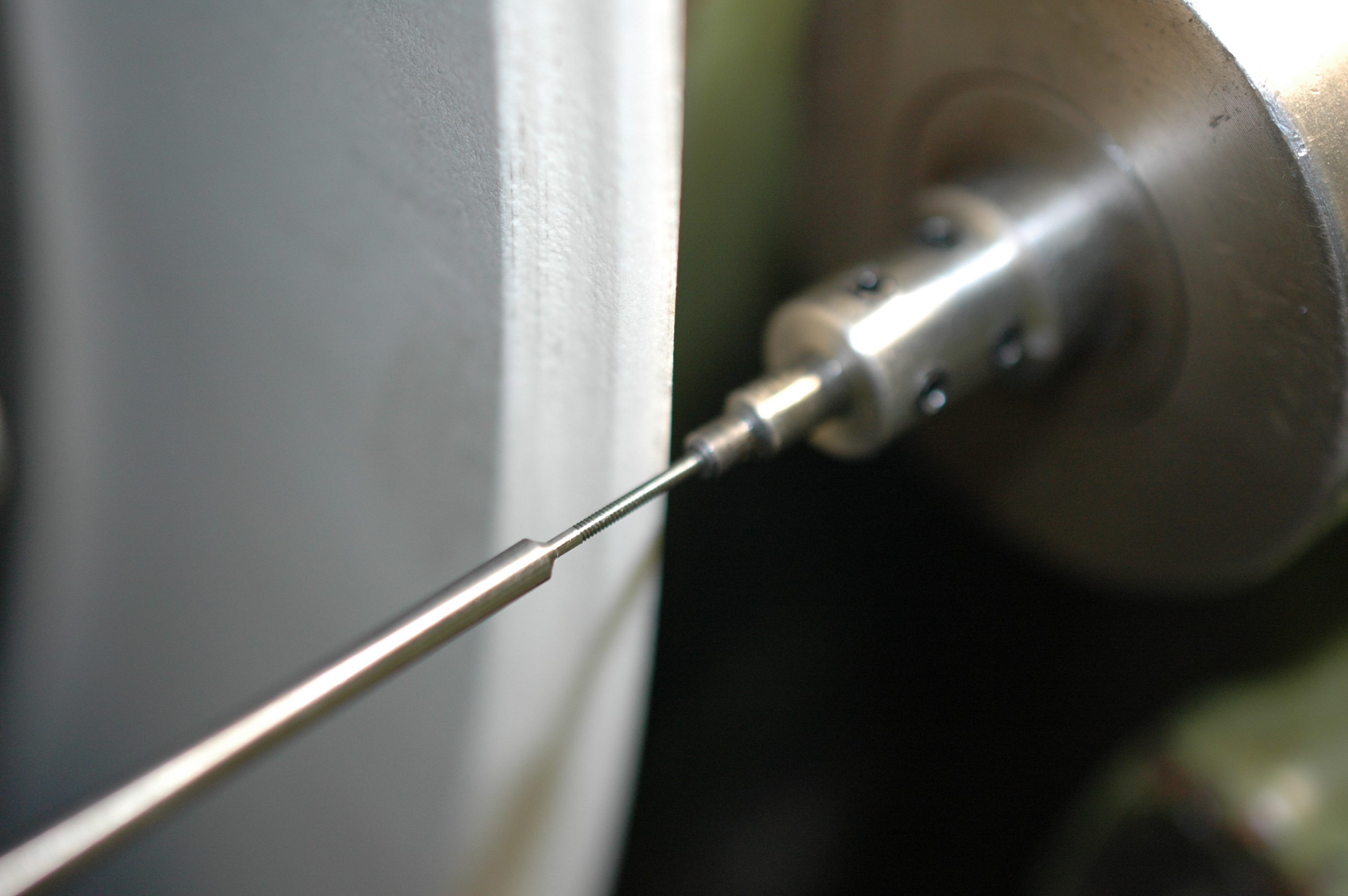 Jo a tady máš (aby řeč zbytečně nestála) závitový kalibr M1 na mašině v hrotech při broušení toho závitu.