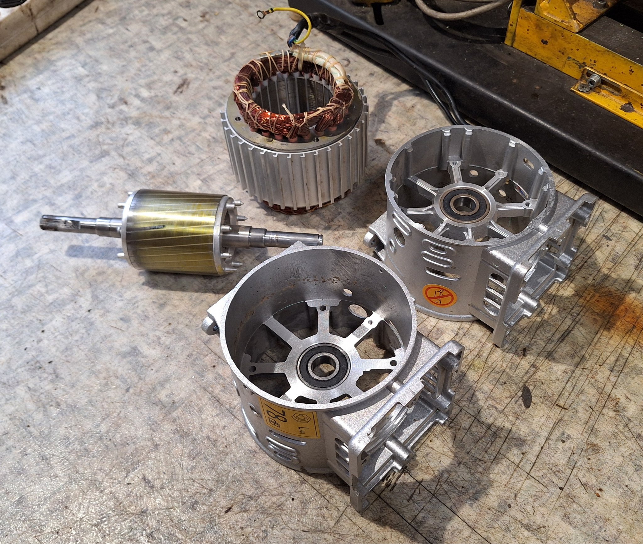 Hmm, změřil jsem odběr v tom stavu na posledním videu, rovných 1800W. Nominální příkon je 750W. Tak to asi moc dobře nevypadá.. Abych zkusil motor vyloženě bez zátěže, budu to muset nejspíš docela hodně rozebrat. Na to už jsem dnes neměl, možná zítra. Také si říkám, že na 750W je ten motor dost malý. Sice je průchozí vzduchem chlazený, ale i tak. V kombinaci s tím vedrem, nejsíš je pečenej :(