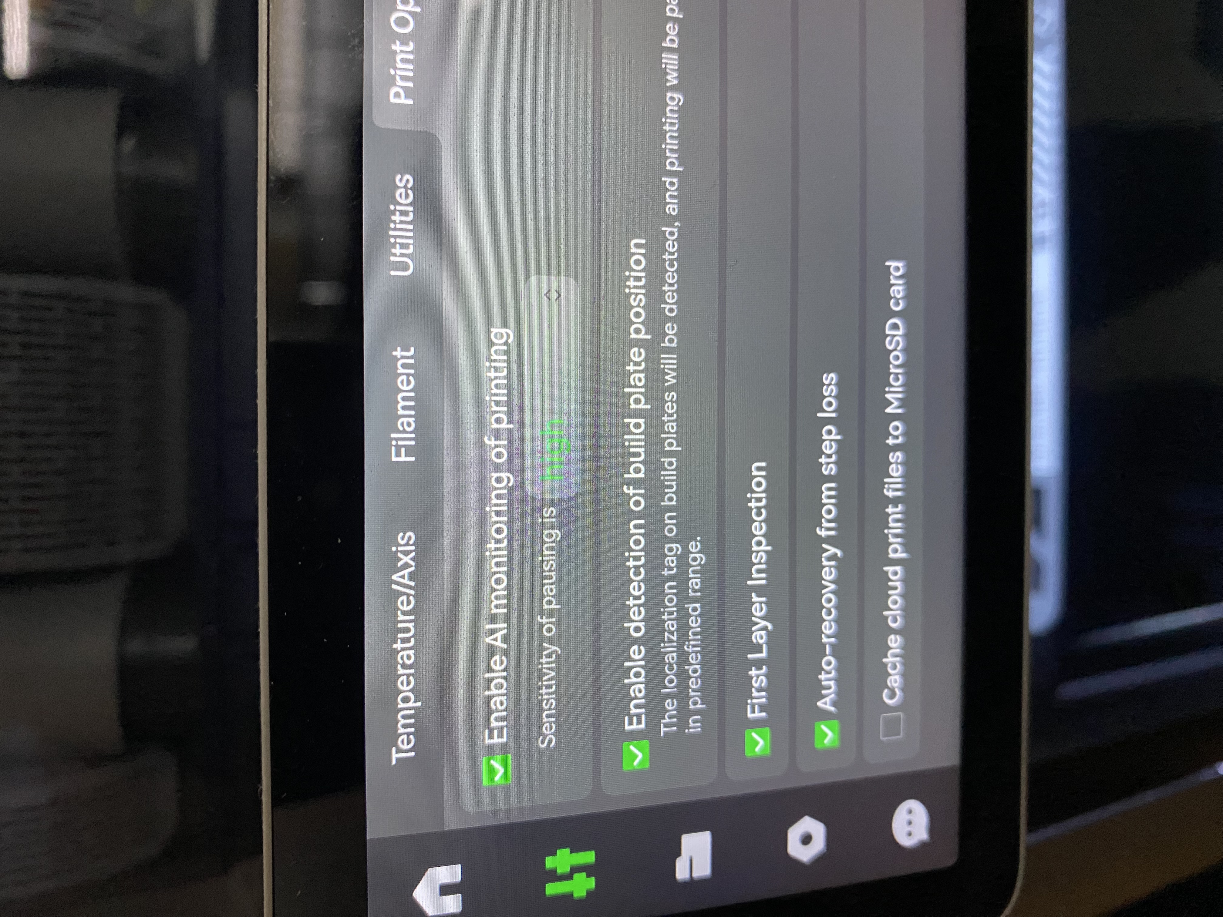 Navic pouzivam osvetleni Biqu a od te doby funguje vse jak ma u x1c, pri tisku tmaveho materialu byl probllem cokoliv videt v komore....nevim proc maj to origo osvetleni tak slabe