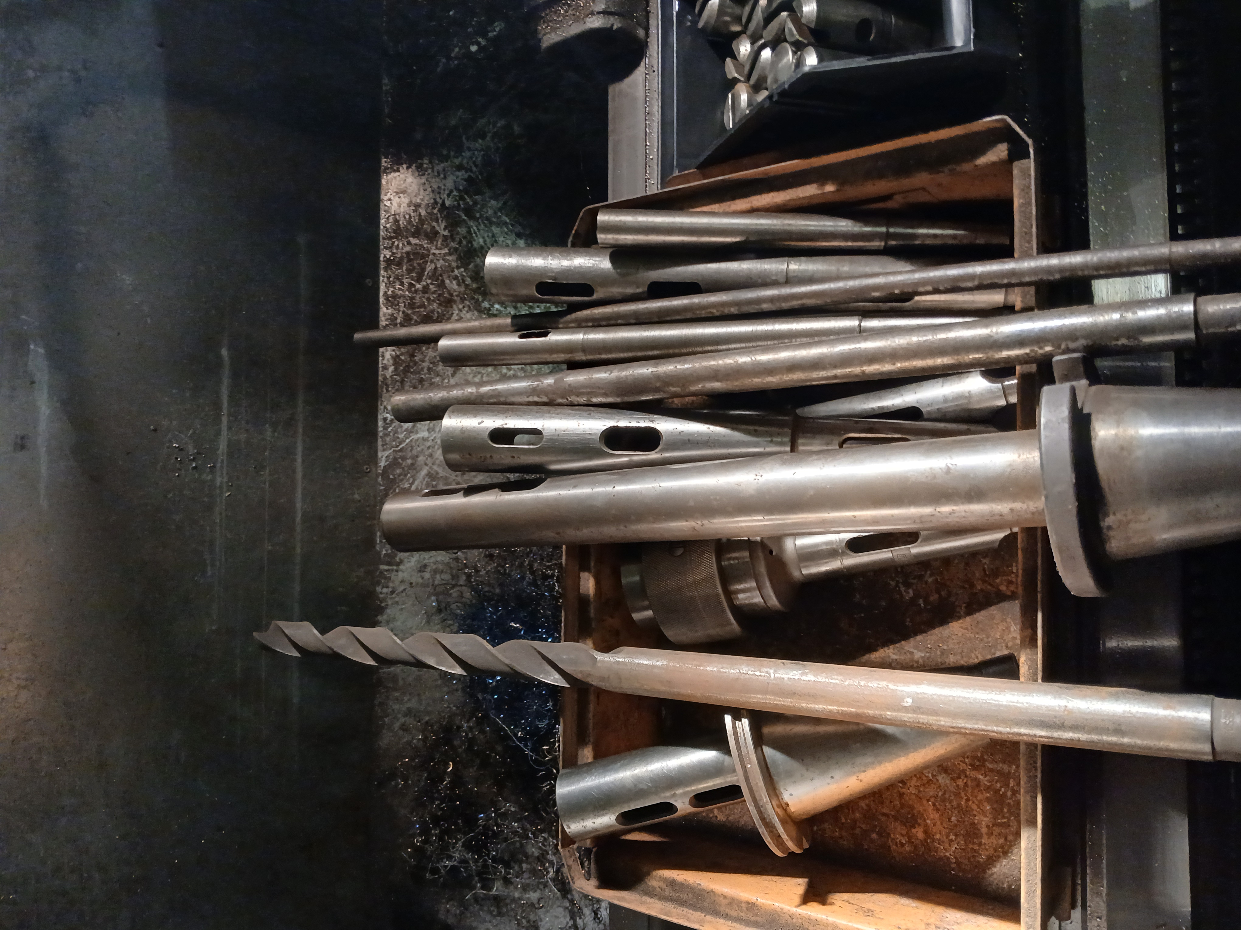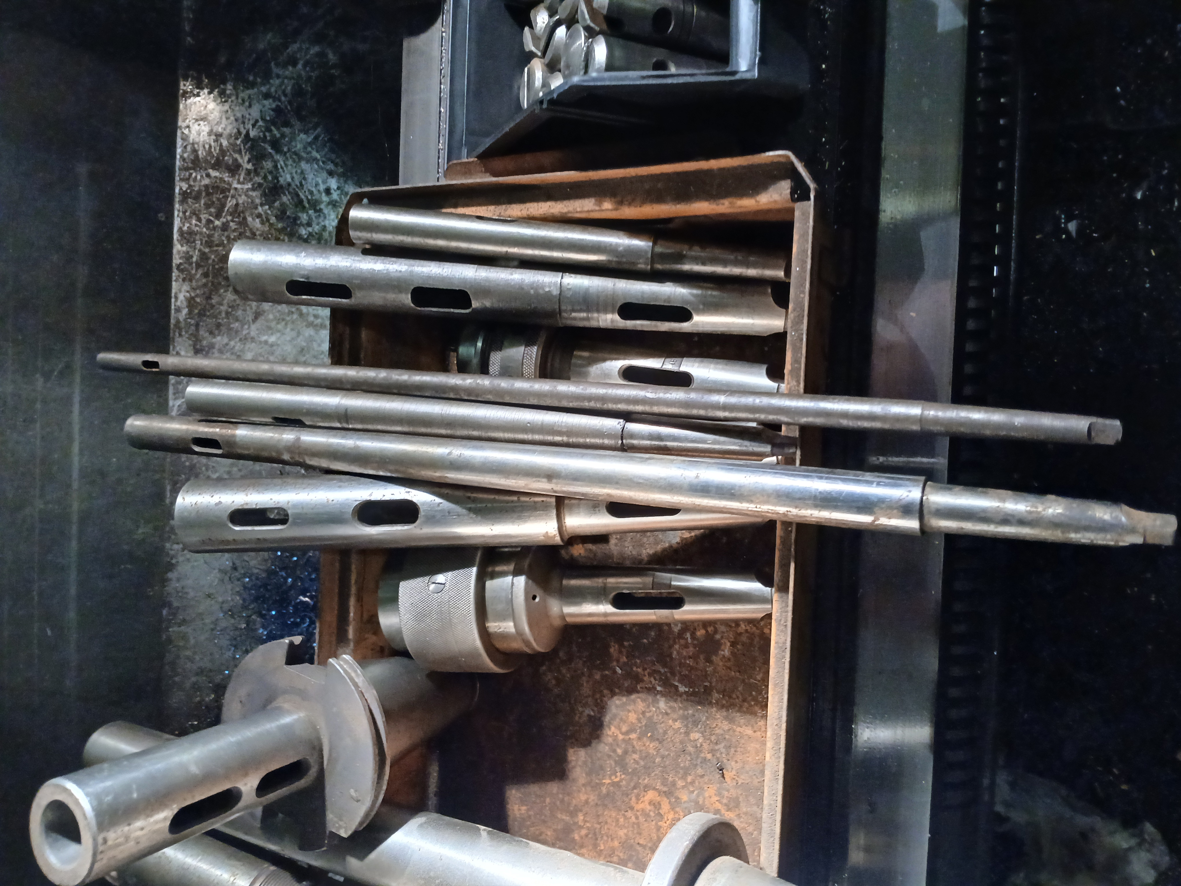 Mám asi bednu vyvrtávacích tyčí s morse bez klínu. Podle mě přes to byla převlečná matka, aby to nevyskočilo ven. Netuším, v čem to měli. Možná nějaká SIPka nebo Mikromat. Ze SIPky rád používám vrtáky. Jsou hodně krátký s válcovou stopkou do kleštiny. Ale jen do 30 mm. Vejdu se s tím v 90 procentech případů. Když ne, hledám vajglíky