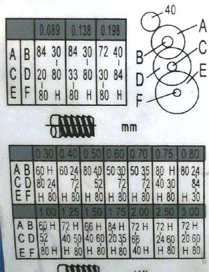Posuvový šroub má stoupání 2mm. Na vřeteně je 40zubů. Na soustruhu (metrická) tabulka 0.5 a výš plus 0.1 a 0.2 na tahání nože.
