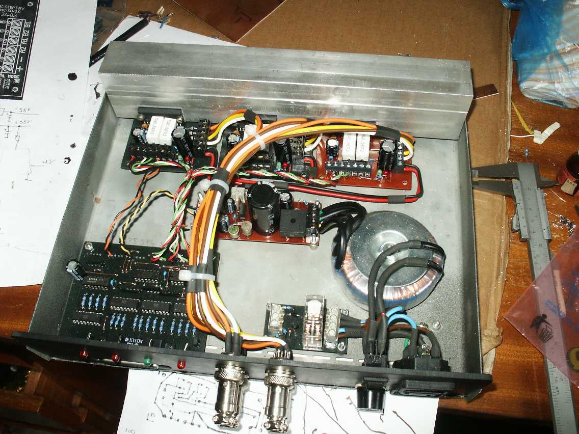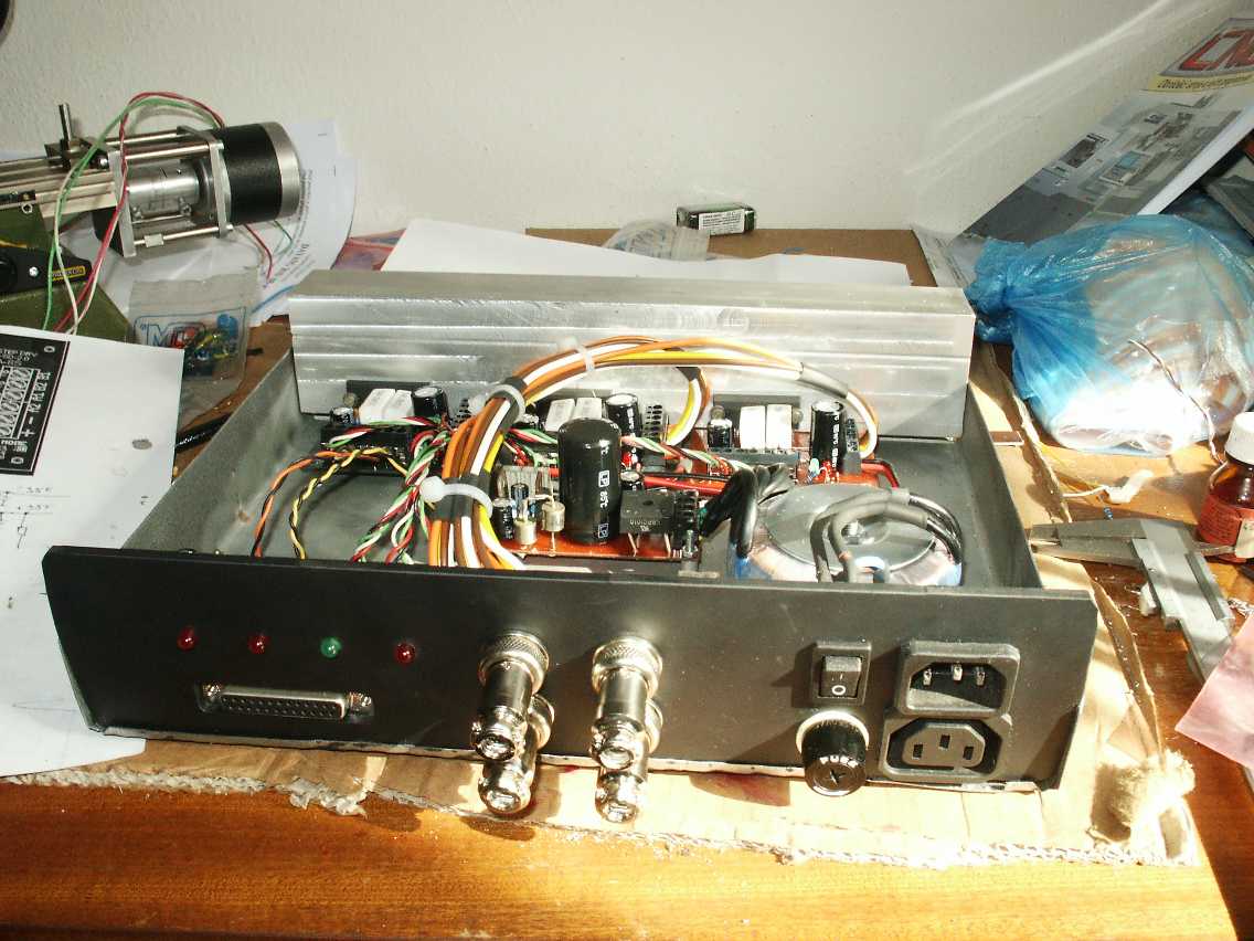 Dalsi fotky. Tentokrat elektronika. 3x driver s TA8435 oddelni portu podle http://www.ottop.republika.pl/optolpt.shtml a ktomu spinani vretena relatkem.